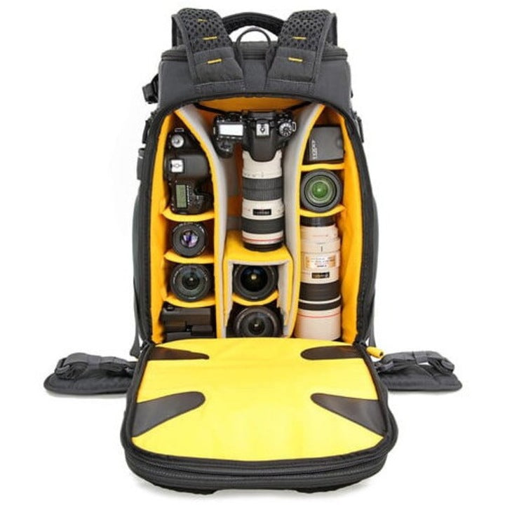 Capacitatea maximă poate găzdui 1–2 DSLR-uri profesionale cu obiectiv atașat (până la 300mm f/2.8), 6–8 obiective, 2 blițuri și accesorii, sau o dronă cu toate accesoriile aferente, folosind separatoarele dedicate pentru dronă (cu dublă utilizare/culori duale) + 1 DSLR profesional cu obiectiv atașat. Dacă transporti mai puțin echipament, rucsacul se poate transforma cu ușurință într-un rucsac de drumeție.