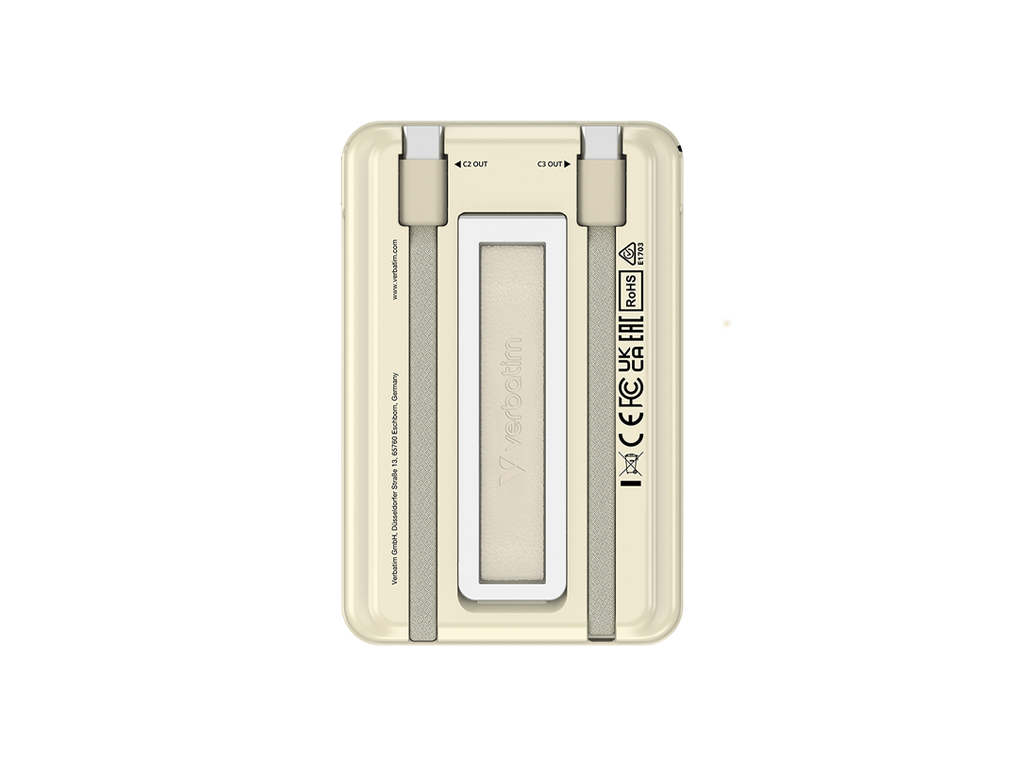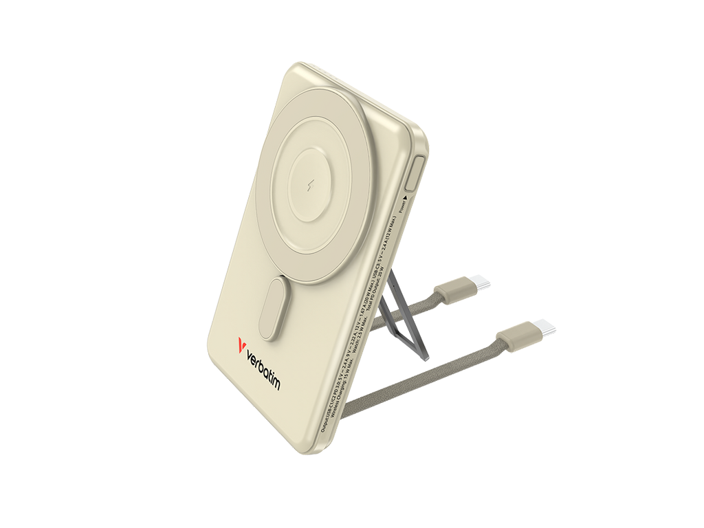 Power Bank Verbatim 5.000mAh C'n'G Magnetic GoldWireless charging, 2 USB-C Cables & Stand