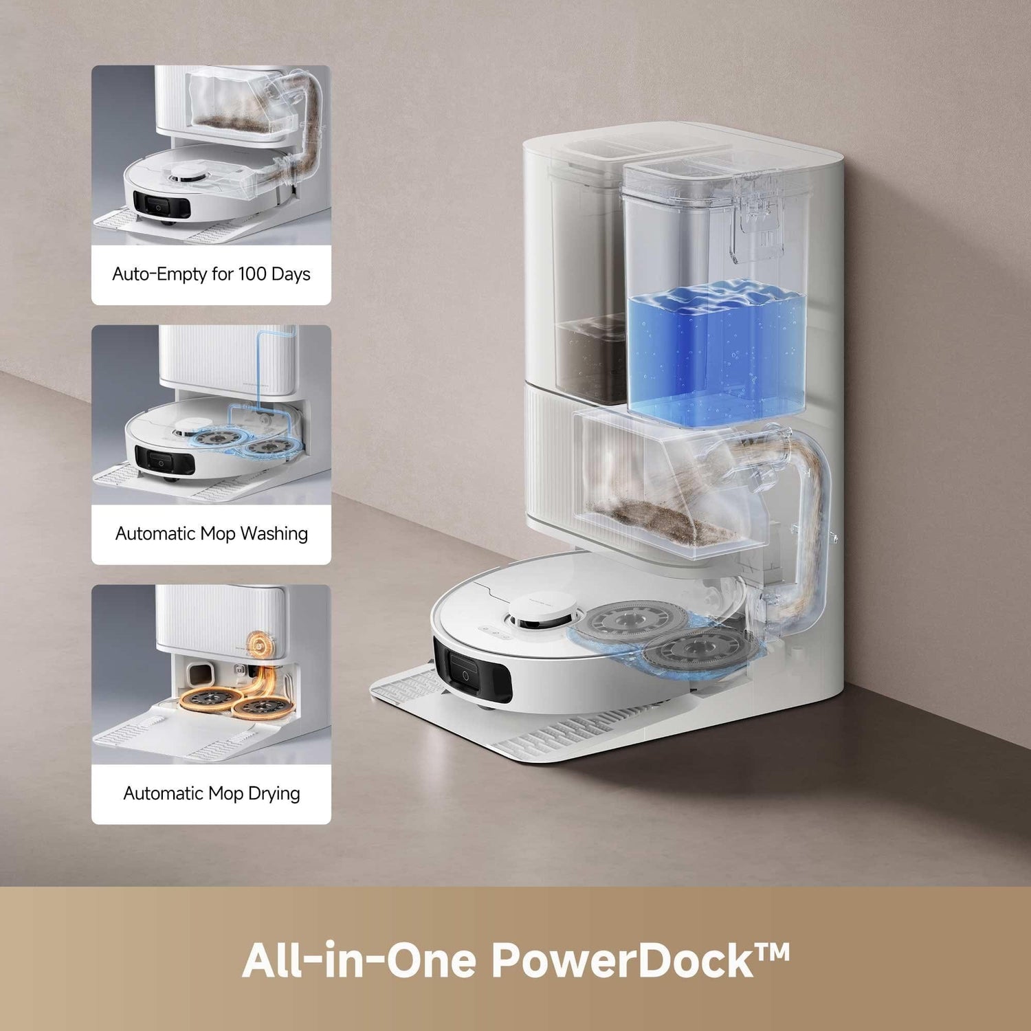 - Functie mop integrata - Sistemul de mop umed curata si aspira simultan, eliminand petele si murdaria aderenta de pe podelele dure. Rezervorul de apa de 4L permite sesiuni complete de curatare fara reumplere.