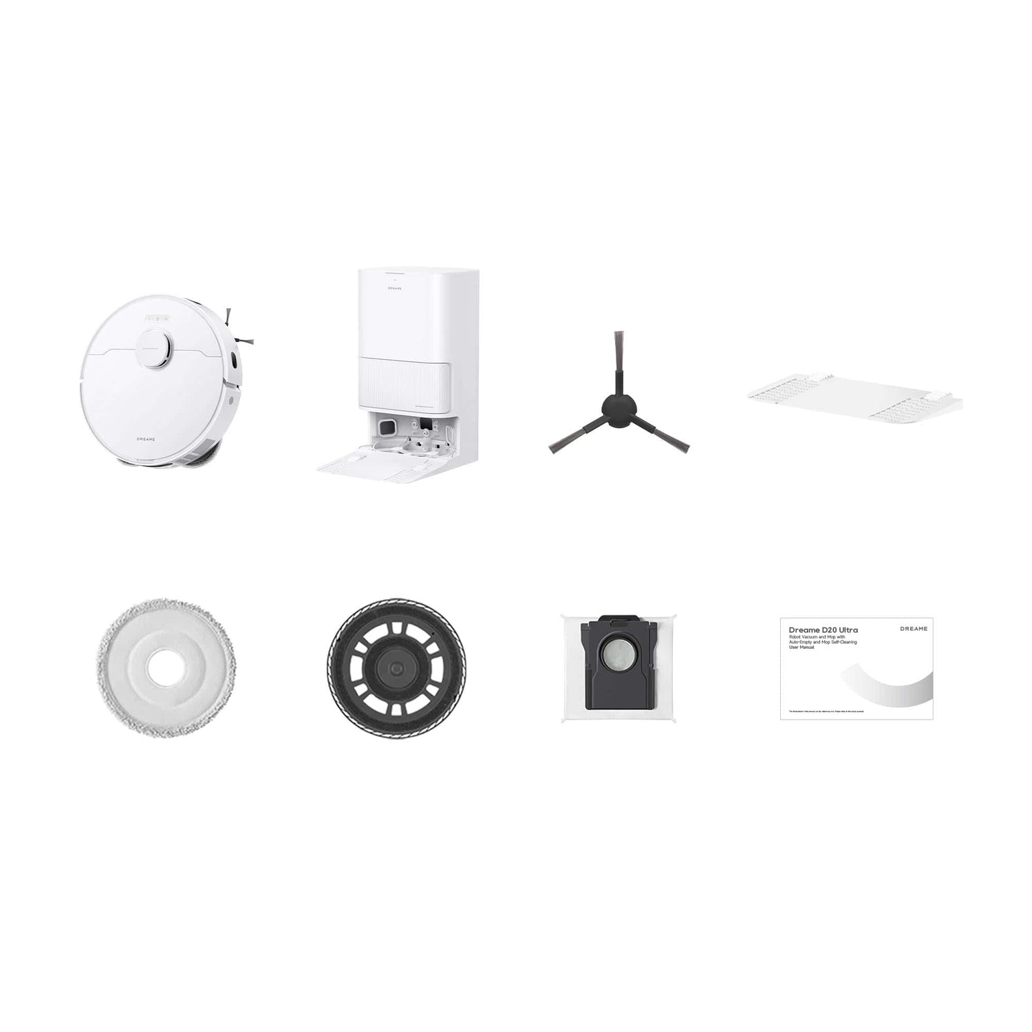Aspirator robot Dreame RLD31SE, statie incarcare, mopuri, perii laterale, manual utilizare, certificat garantie.