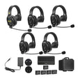 Sistem intercom wireless pentru 5 persoane, ideal pentru producții de film, TV, teatru, evenimente sportive și multe altele, cu funcționare full-duplex reală pentru comunicare simultană.