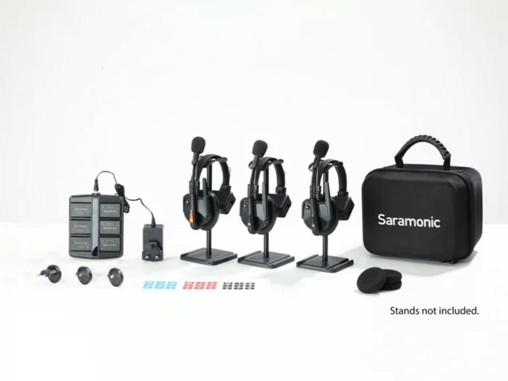 Sistemul intercom complet Saramonic WiTalk9 WT3S include 6 baterii și suportă până la 3 persoane, oferind comunicație full-duplex la 1.9 GHz.