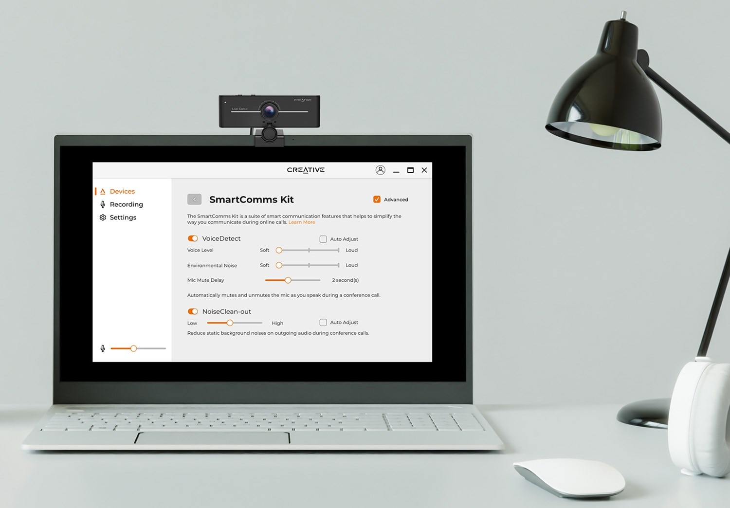 Treceti peste agitatia legata de setarile si comenzile microfoanelor si evitati sa fiti distras atunci cand sunteti intr-o conferinta telefonica sau intr-o sesiune de transmisiune in direct. Cu SmartComms Kit, disponibil prin intermediul aplicatiei Creative, suita de functii de comunicare inteligenta este conceputa pentru a va ajuta sa vorbiti si sa conversati cu usurinta.