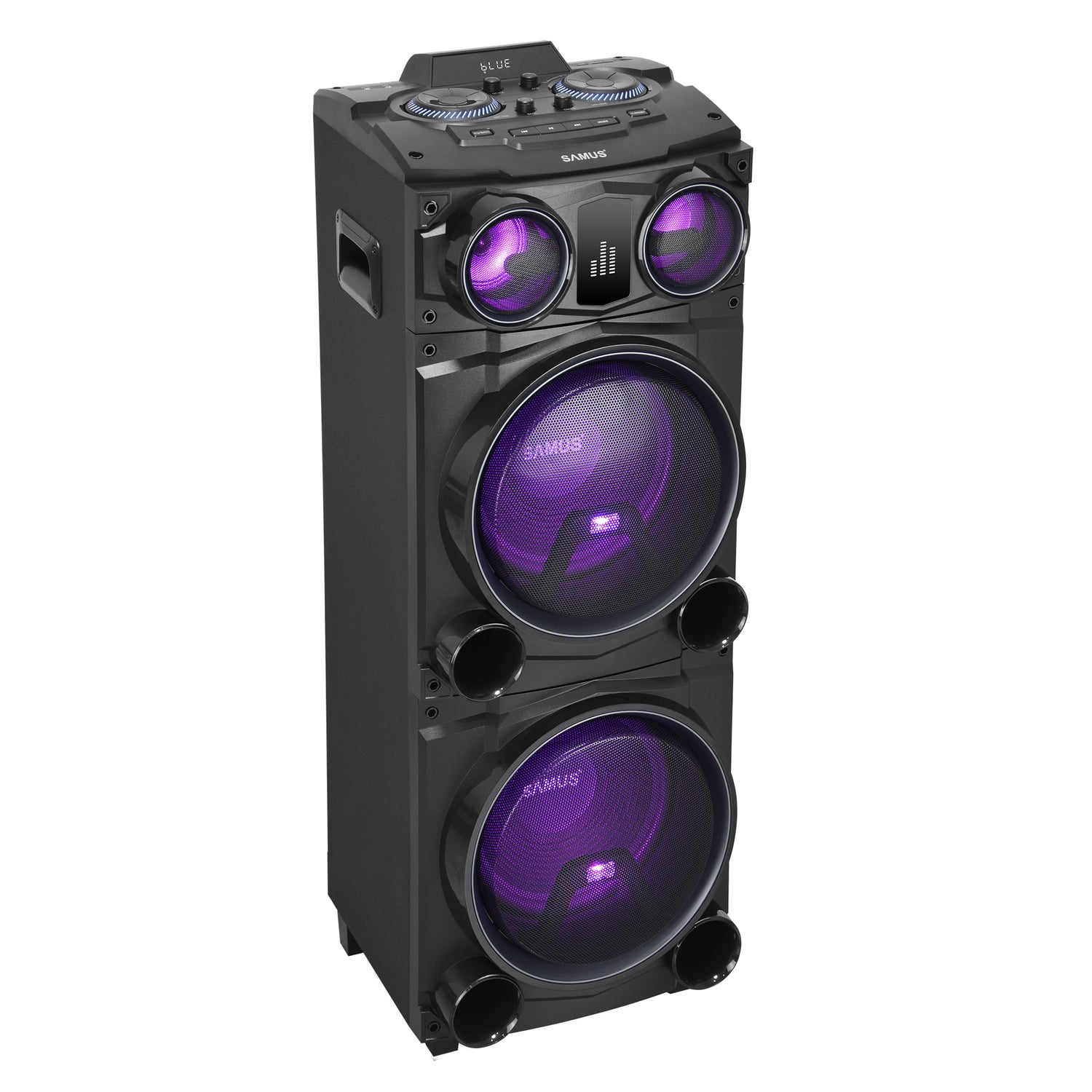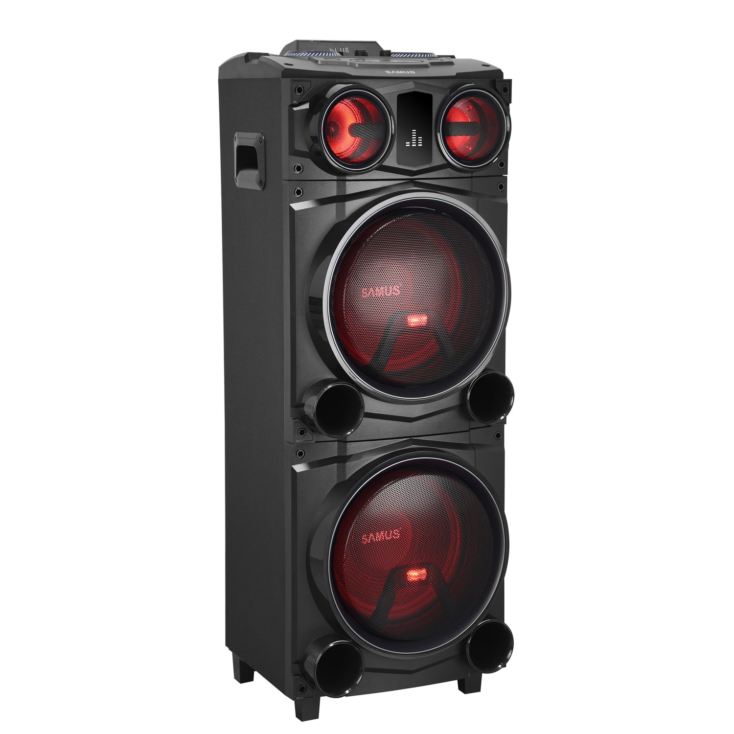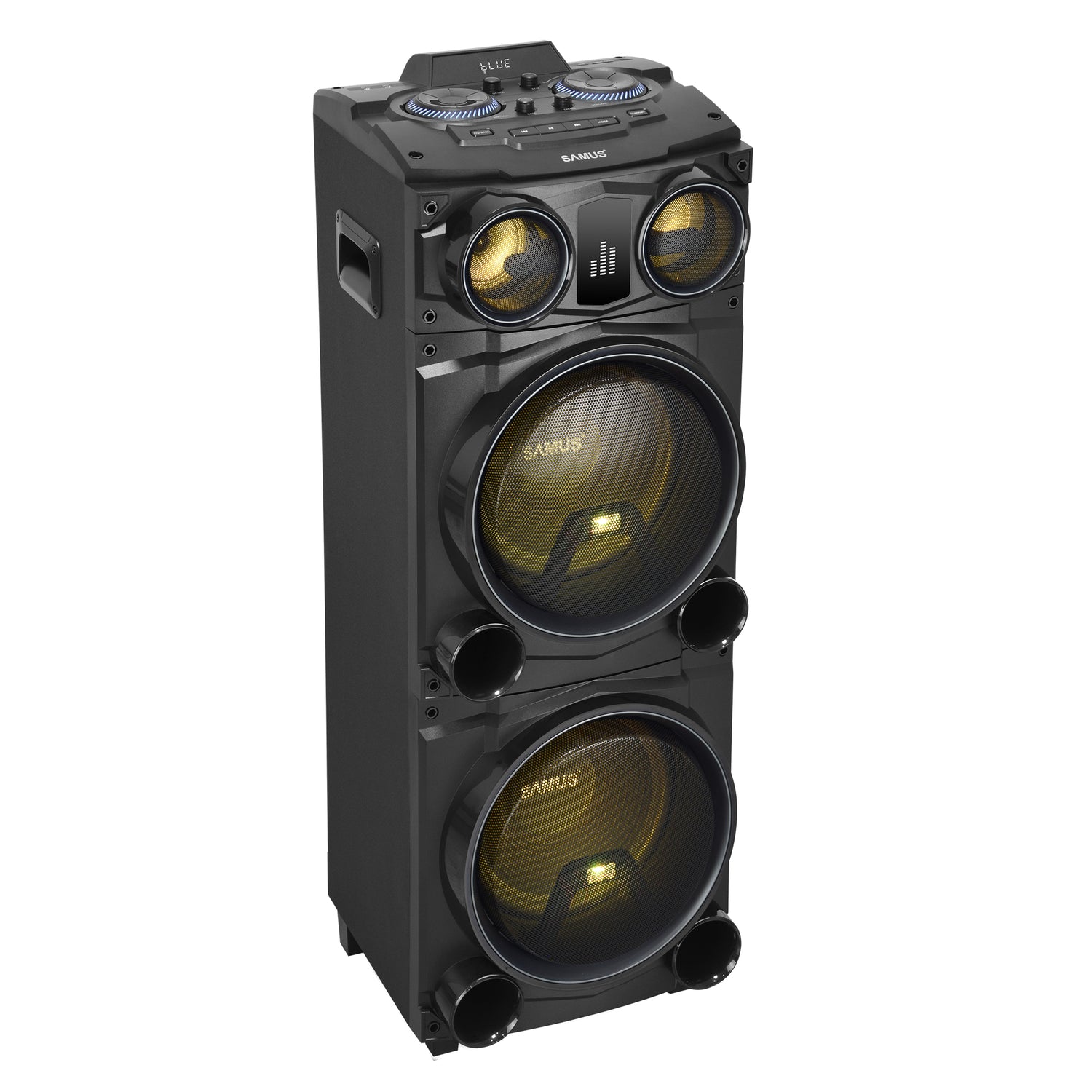 Boxa portabila+microfon fara fir Samus FIESTA 12 - Putere RMS 100 W / de ieşire 300 W / PMPO 1000 W ▪ Difuzoare: 2 x 12 inch (woofer), 1 x 4 inch, 1 x 1