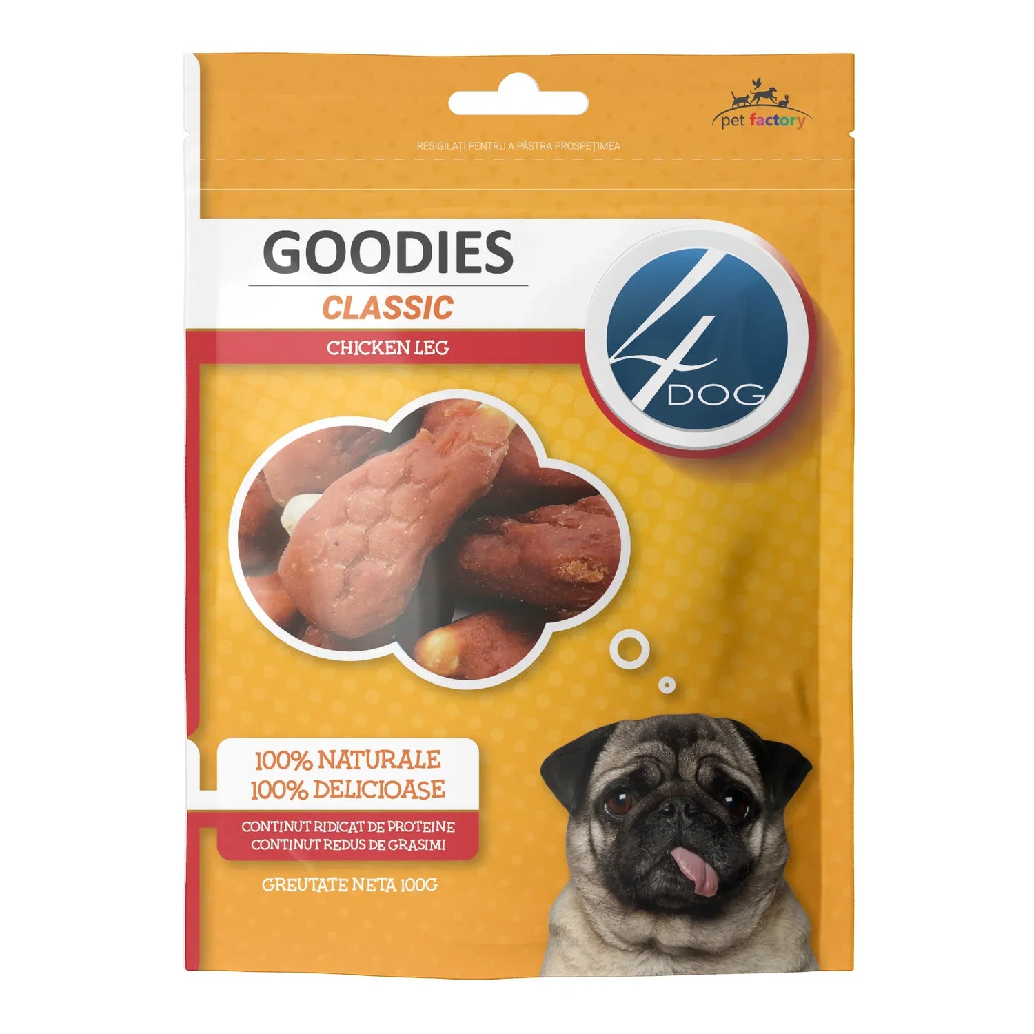Recompense pentru Caine Adult, 4DOG GOODIES Classic, Copan de Pui, 100g sunt gustari complementare 100% naturale, ideale pentru cainii de orice talie si varsta. Aceste recompense delicioase, in forma de copan, combina gustul irezistibil al carnii de pui cu beneficiile unui os de calciu, oferind atat placere la mestecat, cat si un aport nutritional echilibrat. Carnea de pui (60%) furnizeaza proteine usor digerabile si gustoase, in timp ce osul de calciu (30%) sustine sanatatea dentara si aportul de minerale esentiale. Cu un continut proteic ridicat (40%) si un nivel redus de grasimi (4%), aceste gustari sunt potrivite pentru utilizarea regulata fara a compromite dieta zilnica a cainelui tau. Glicerina (3%) si sorbitolul (2%) contribuie la mentinerea texturii si prospetimii, fara a afecta naturalitatea produsului. Recompensele nu contin conservanti sau aditivi artificiali, fiind o optiune sanatoasa si sigura. Compozitie Recompense pentru Caine Adult, 4DOG GOODIES Classic, Copan de Pui, 100g: Ingrediente: Pui 60%, Os de calciu 30%, Proteine din soia 5%, Glicerina 3%, Sorbitol 2%. Valori analitice: Proteina 40%, Grasimi 4%, Fibre 1,5%, Umiditate 23%. Mod de utilizare: Se ofera ca gustare sau recompensa intre mesele principale. Asigurati acces permanent la apa proaspata. Supravegheati cainele in timpul consumului. Depozitare: A se pastra intr-un loc uscat si racoros. Produsul nu este destinat consumului uman.