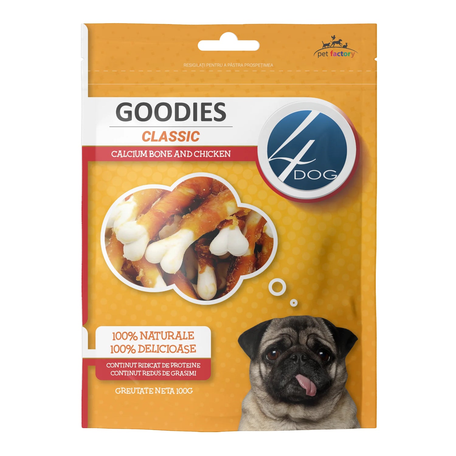 Recompense pentru Caine Adult, 4DOG GOODIES Classic, Os din Calciu cu Pui, 100g