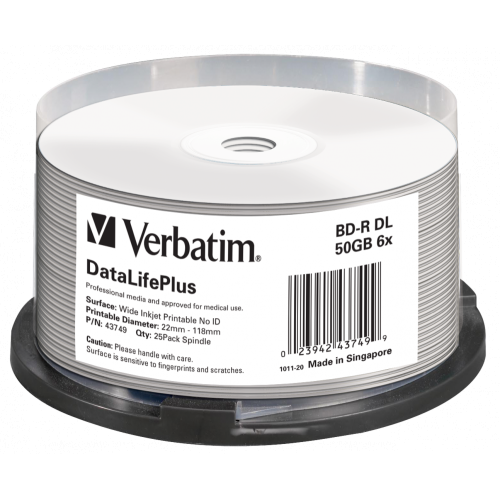 Verbatim BD-R DL 50GB 6X Wide Printable 25 Pack Spindle - No ID Brand