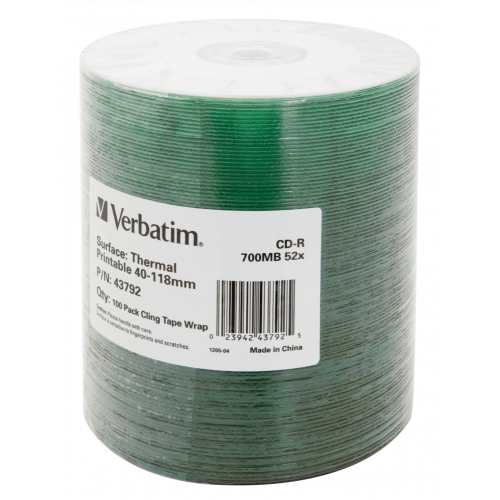 Verbatim CD-R 700MB Thermal Printable - No ID 100 Pack Wrap