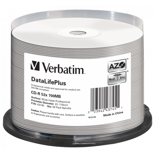 Verbatim CD-R AZO 700MB 52X DL+ WHITE WIDE PRINTABLE SURFACE NON-ID
