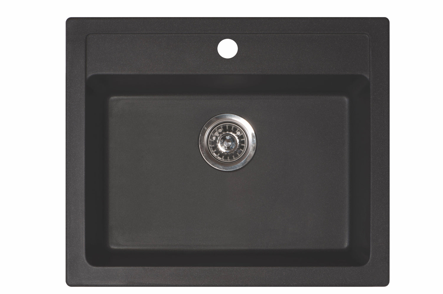 Chiuveta X Granit Quadro 60 negru 600 x 500 mm, sifon 90 mm, granit