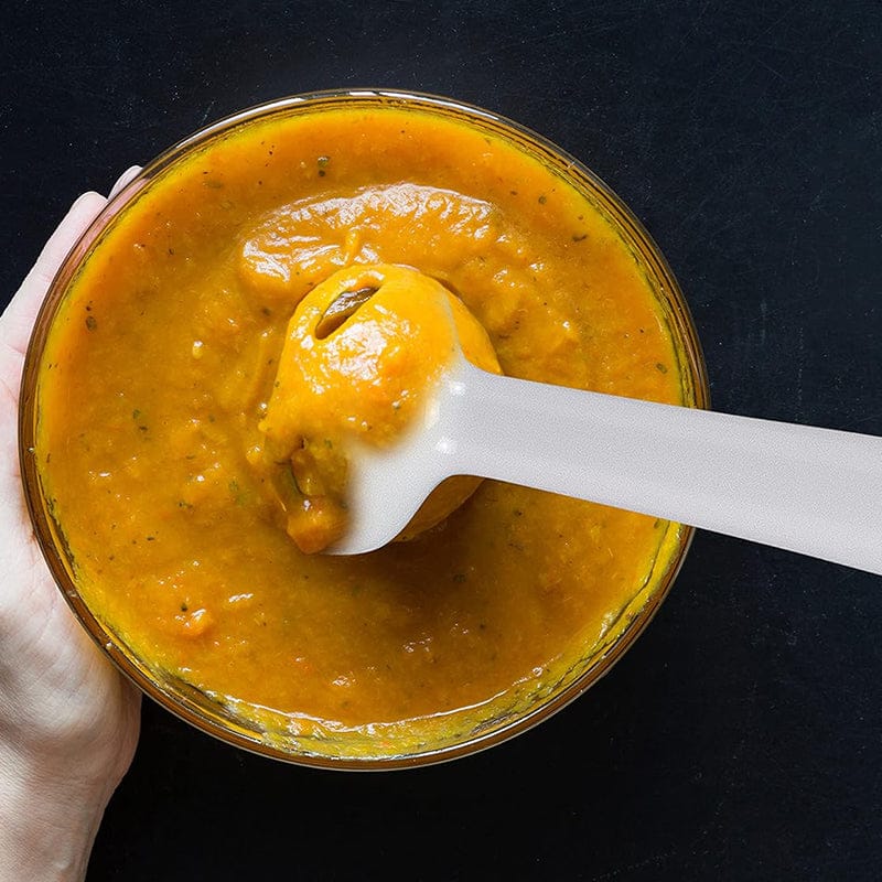 • Maner ergonomic antiderapant - Forma studiata a manerului asigura o prindere confortabila si sigura chiar si in timpul utilizarii prelungite sau cu ingrediente grele.