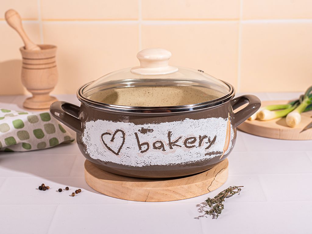 Cratita 1.85l cu capac din sticla Bakery Metalac email/16cm/1.85l