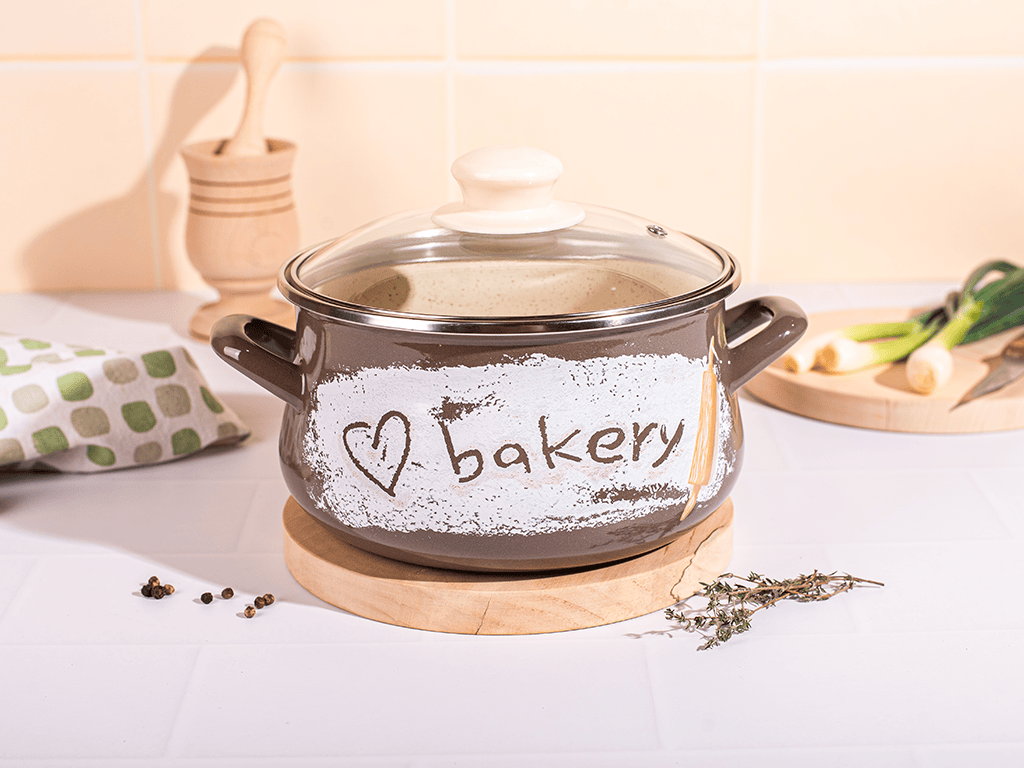 Oala 2.2l cu capac din sticla Bakery Metalac, email, 16cm