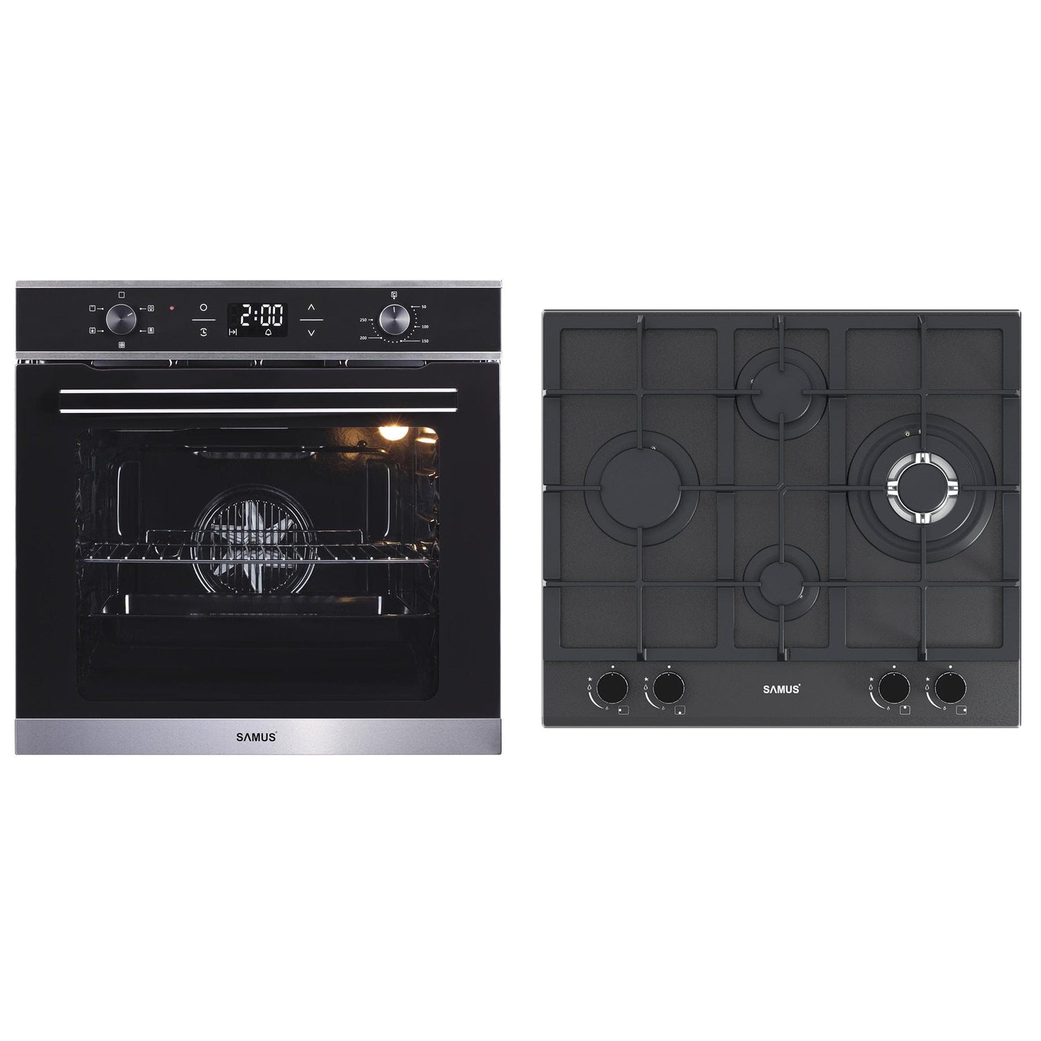 🥧 Pachet Built-In Samus SC625GDX5 + PSG-64SMGN2 | Cuptor 75L, 5 Functii + Plita pe Gaz 4 Arzatoare
