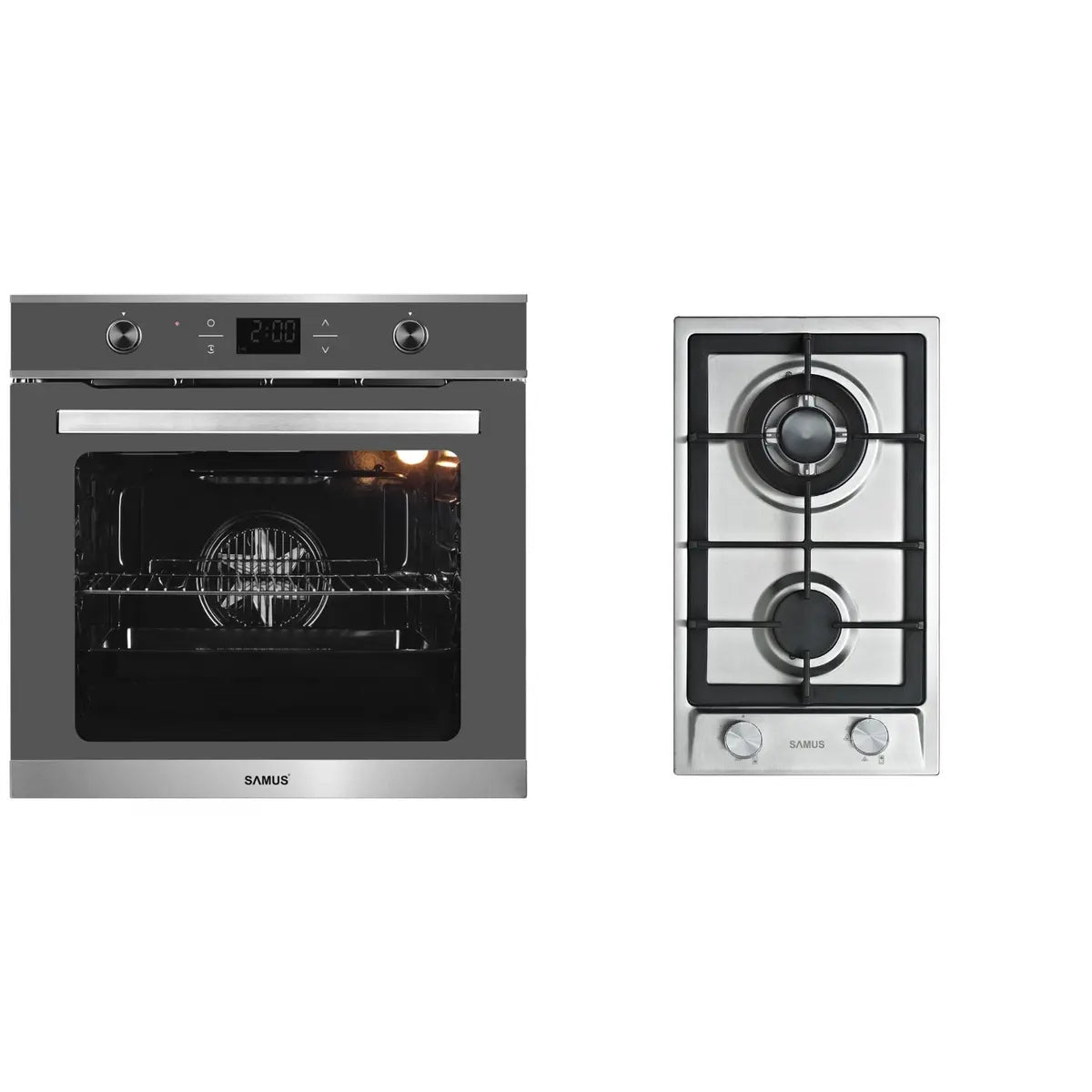 Pachet Built-In Samus SC626GDX9 + PSG-32SX2 | Cuptor 75L, 9 Functii + Plita Gaz 2 Arzatoare Domino, Gri/Inox