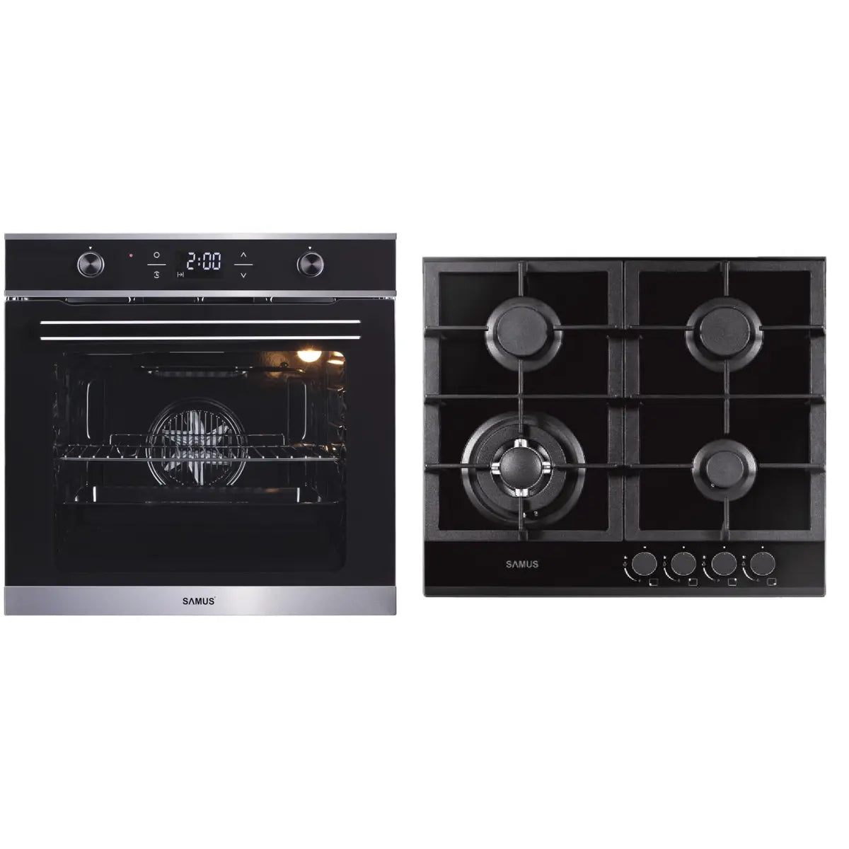 🥧 Pachet Built-In Samus SC626GDX9 + PSG-64SG1 | Cuptor 75L, 9 Functii + Plita pe Gaz 4 Arzatoare