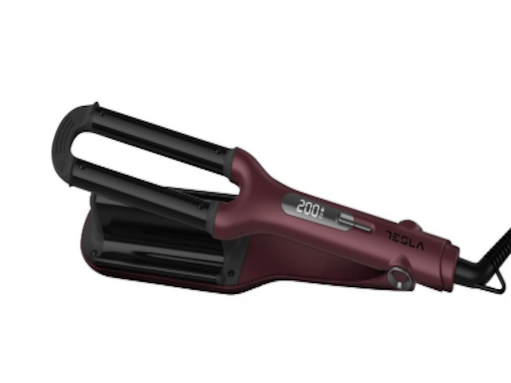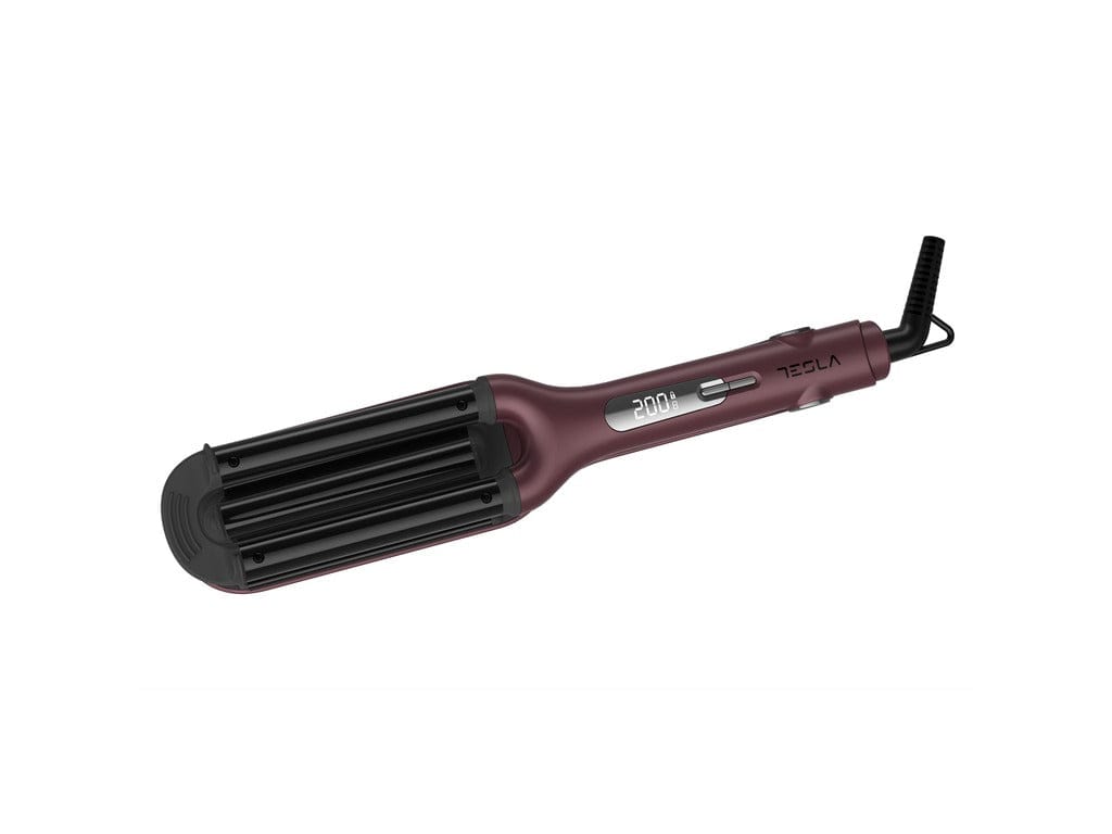 Placa profesionala de ondulat Tesla WVH500BB200 grade, display LED, Timer, Ceramic, Burgundy