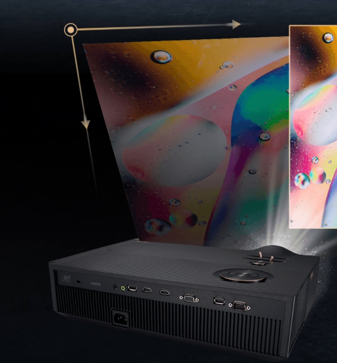 Proiectorul ProArt A1 ofera corectii trapezoidale in patru colturi si 2D si un raport de zoom de 1,2x pentru proiectarea imaginilor in spatii inguste. Corectia trapezoidale 2D va permite sa ajustati imaginea proiectata pentru proiectia dreptunghiulara corecta, iar cele patru ajustari de colt compenseaza pentru a evita distorsiunea imaginii atunci cand proiectorul este decentrat fata de suprafata de proiectie.
