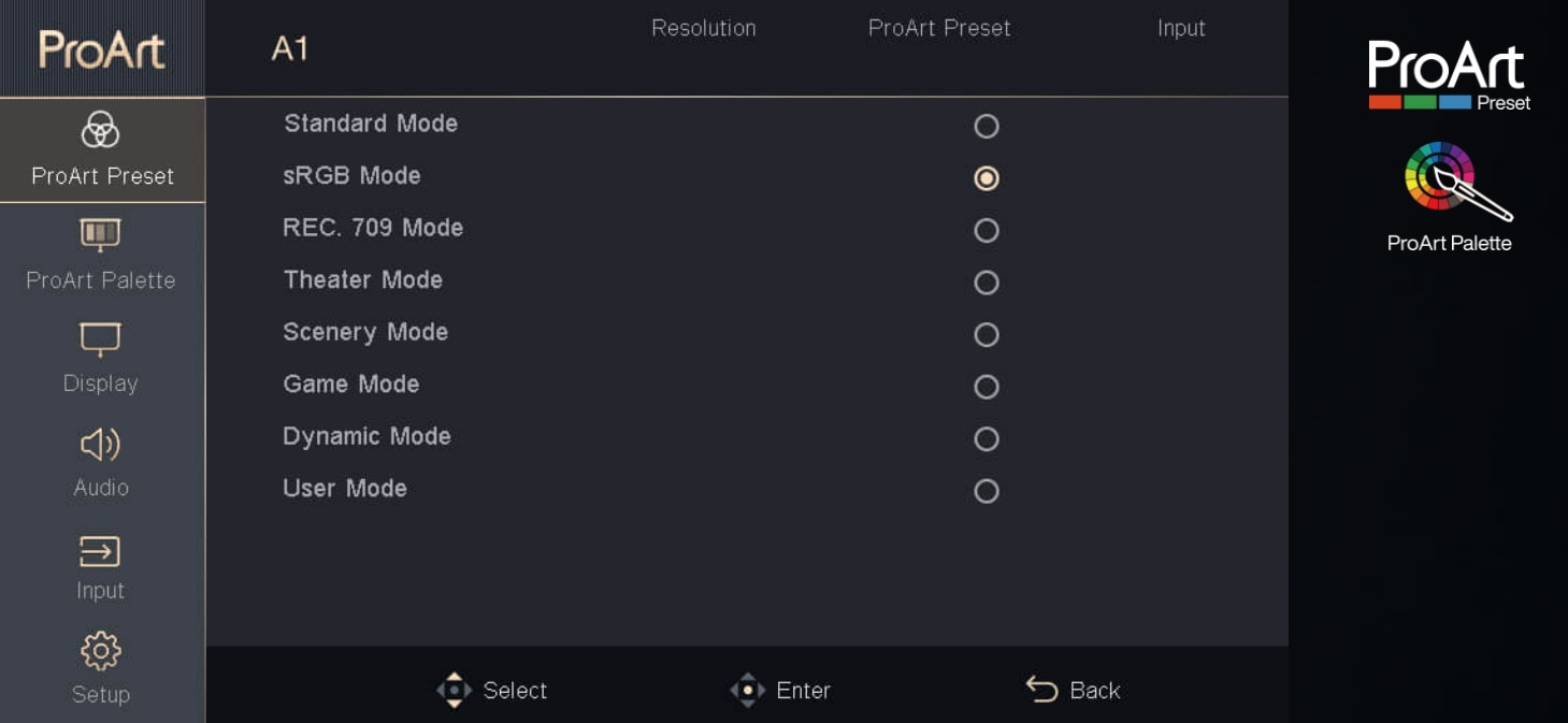 - Gestionare simpla a culorilor: software-ul ASUS ProArt Preset si ProArt Palette ofera acces rapid la setarile programate si la parametrii de culoare