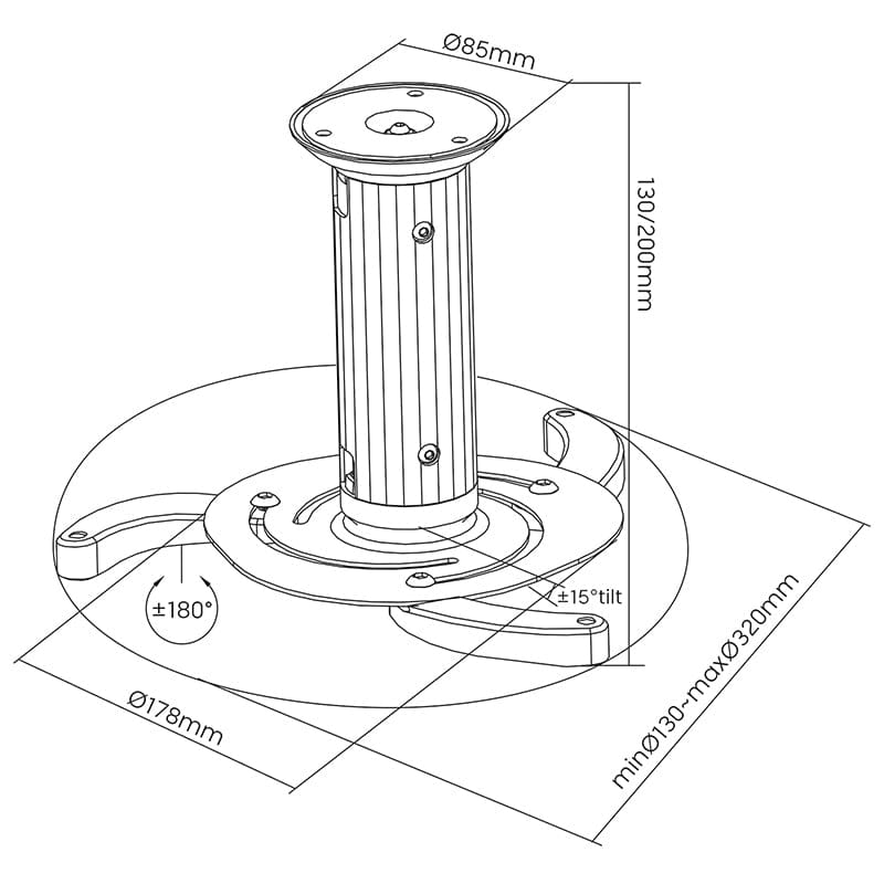 Descriere: Suport de tavan pentru proiector. Culoare: gri. Greutate maxima suportata: 10 kg