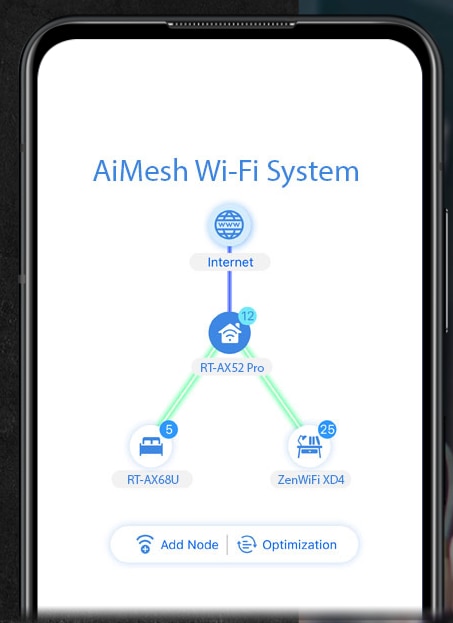 Daca aveti nevoie de mai multa acoperire sau de functii noi, puteti adauga in orice moment un alt router compatibil la reteaua dvs. AiMesh!