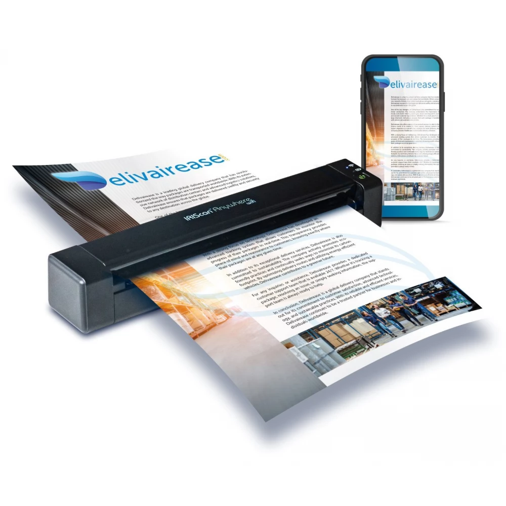Iriscan Oriunde 6 WiFi este un scaner de documente portabile, autonome, autonome, auto -rezoluție, cu litiu, care permite contracte, scrisori de transport, facturi, chitanțe, comenzi medicale, documente pentru pacienți, cărți de vizită, pagini, scrisori.