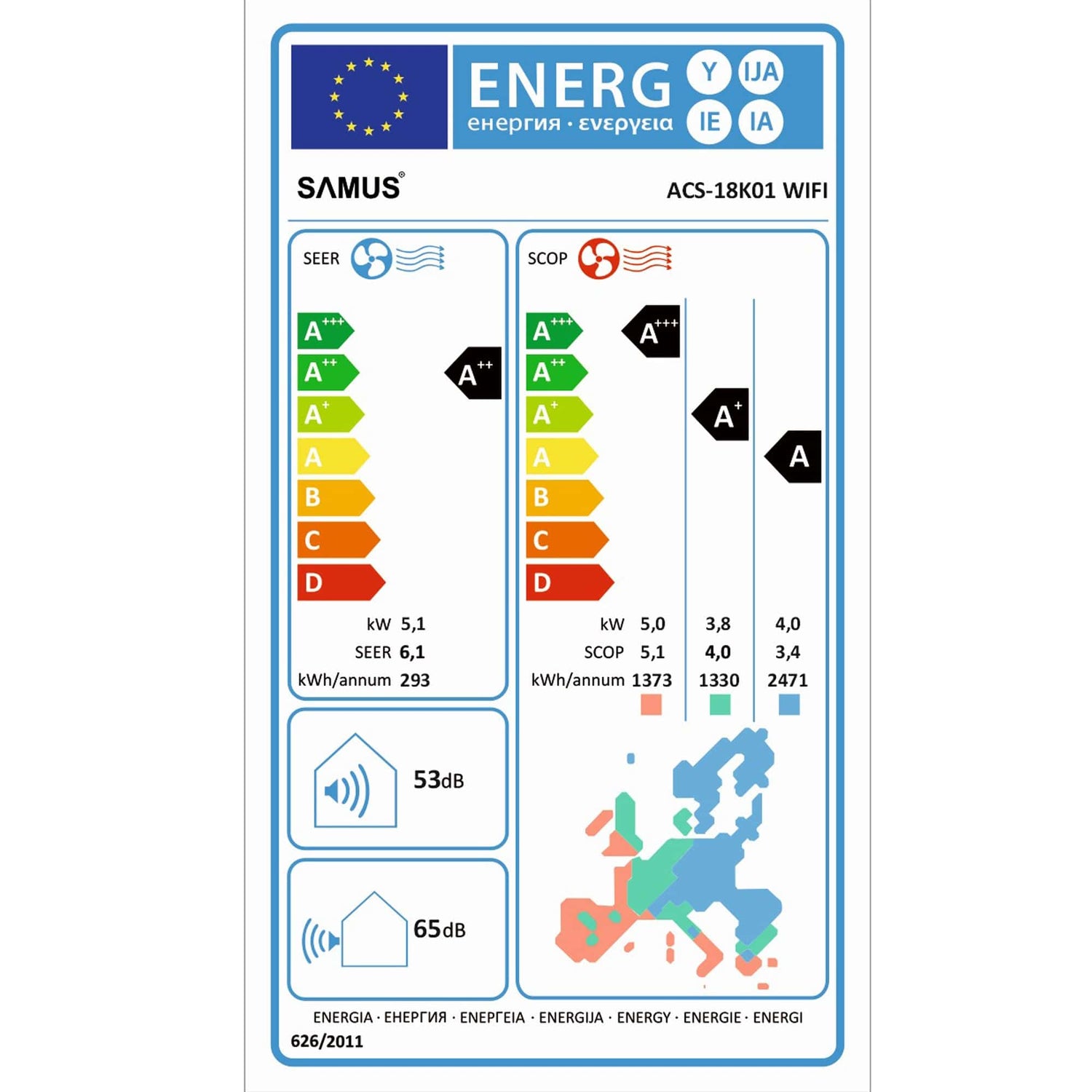 Aer Conditionat Samus ACSW-18K01 | 18000 BTU, Clasa A++/A+++, WiFi, Alb