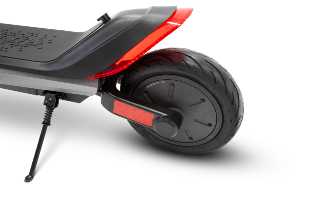 Modelul de trotineta electrica se distinge in primul rand prin functiile sale. Motorul de 350 W va permite sa va bucurati de condus cu viteze de pana la 20 km pe ora. Franele (tambur fata, electronice spate), amortizorul spate si accesoriile precum semnalizatoarele de directie, iluminarea cu LED-uri si un semnal sonor (sonerie) sunt responsabile pentru siguranta in timpul condusului. Bateria de 10Ah se incarca in aproximativ 5 ore si va permite sa calatoriti pana la 40 km cu o singura incarcare. Trotineta electrica are rezistenta ridicata, datorita utilizarii aluminiului. Un avantaj suplimentar este rezistenta la apa IPX4.