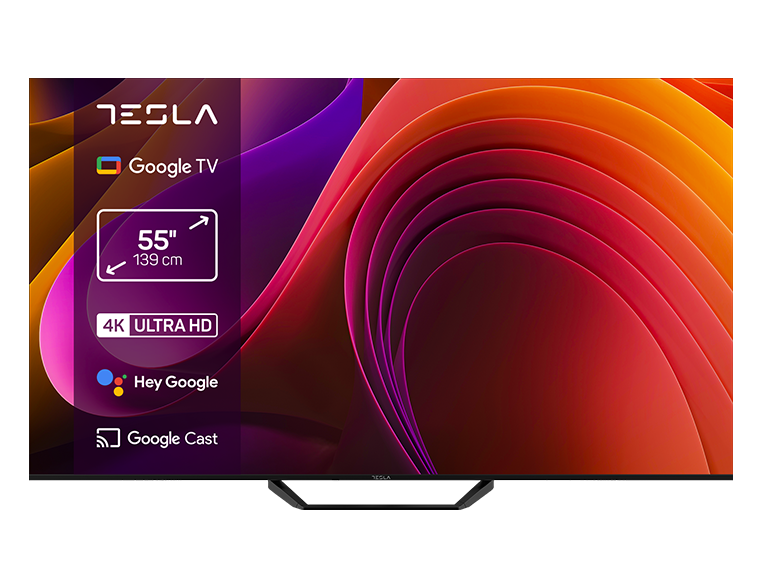 Tesla Google TV DLED 55E655BUS, 139 cm, UHD, blackDVB-T/T2/C/S/S2, 250cd/m2, VESA 200x300 mm