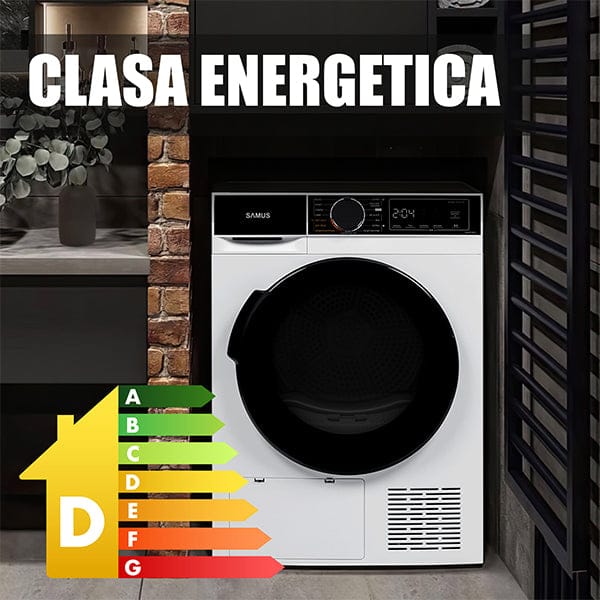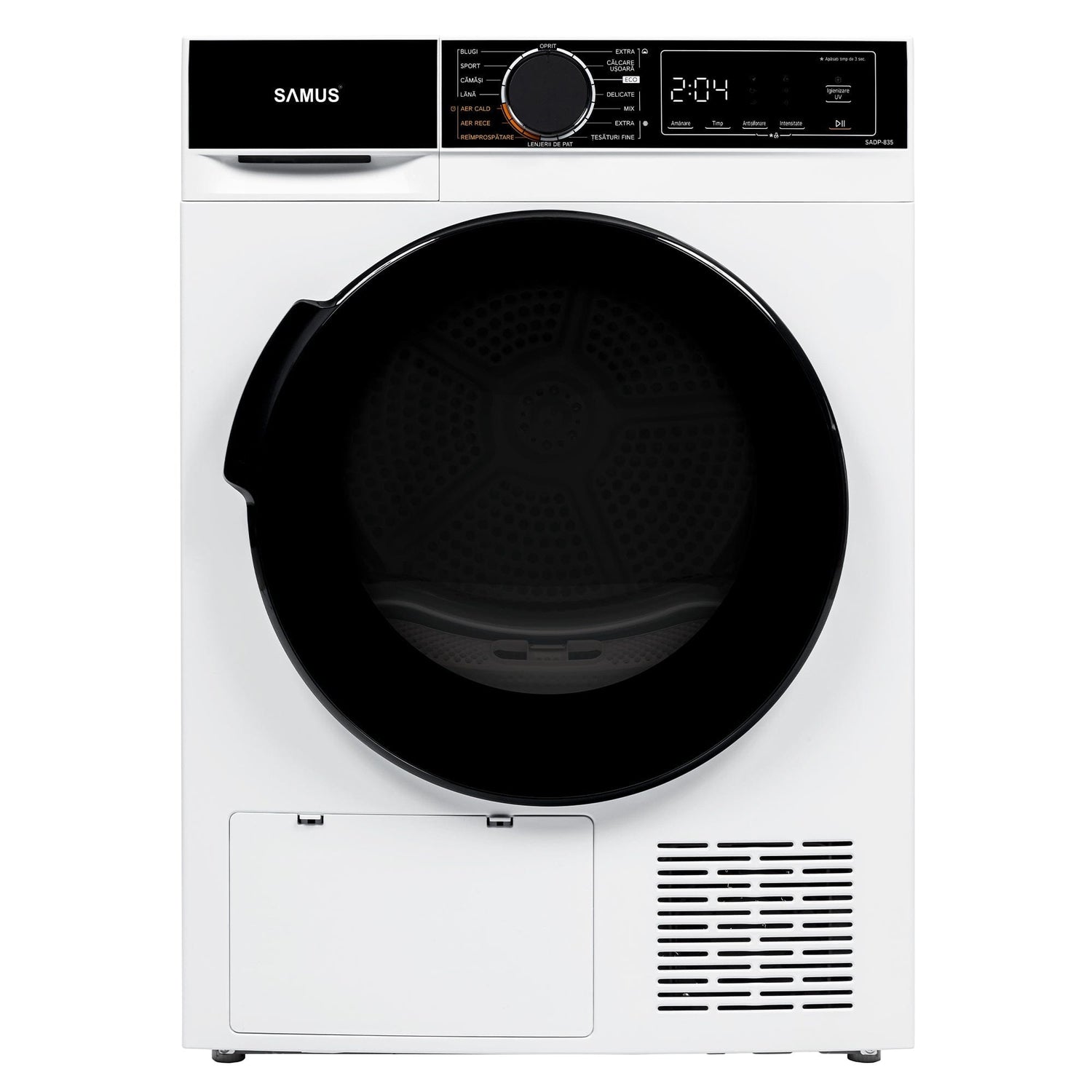 🧺 Uscator de Rufe Samus SADP-835 | 8kg, Pompa de Caldura, 15 Programe, Clasa D, Alb