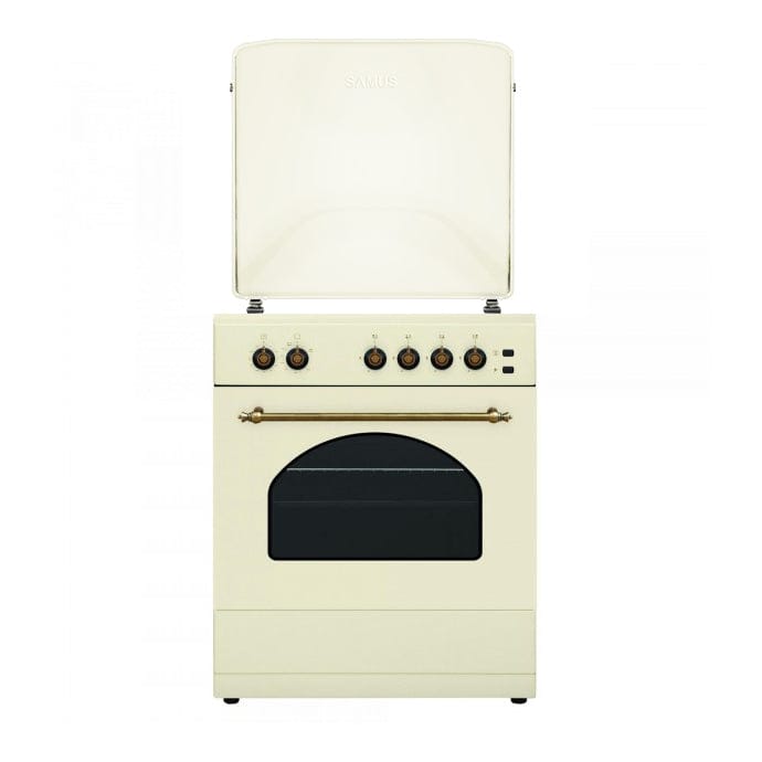 Aragazul Samus SR660S4C1 cu cuptor de 55L este alegerea perfecta pentru cei care isi doresc o bucatarie functionala, eleganta si echipata cu tehnologie moderna. Cu un design vintage deosebit in culoarea crem, acest aragaz Samus aduce un farmec aparte oricarei bucatarii, combinand estetica retro cu performanta contemporana. Dotat cu 4 arzatoare pe gaz, aragazul ofera flexibilitate maxima in prepararea meselor zilnice. Fie ca pregatesti o cina festiva pentru intreaga familie sau un pranz rapid in timpul saptamanii, aragazul Samus SR660S4C1 iti pune la dispozitie toate instrumentele necesare pentru rezultate exceptionale in bucatarie.