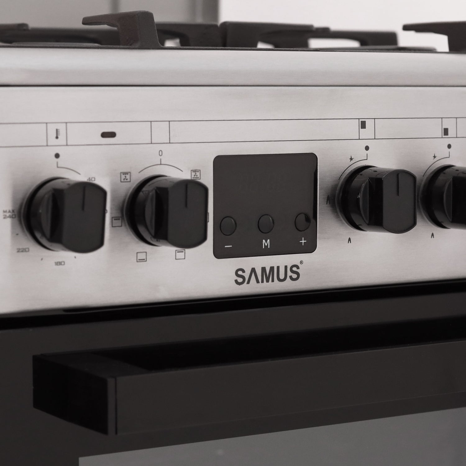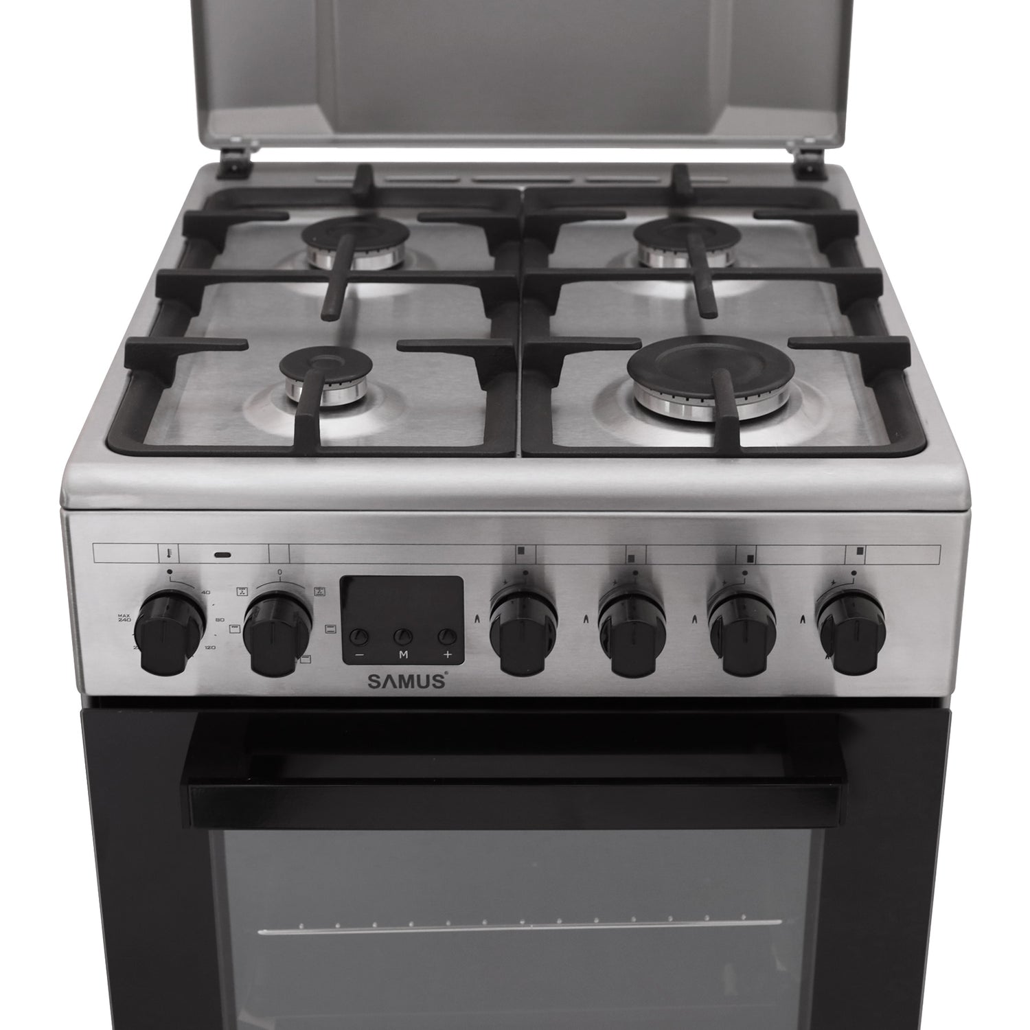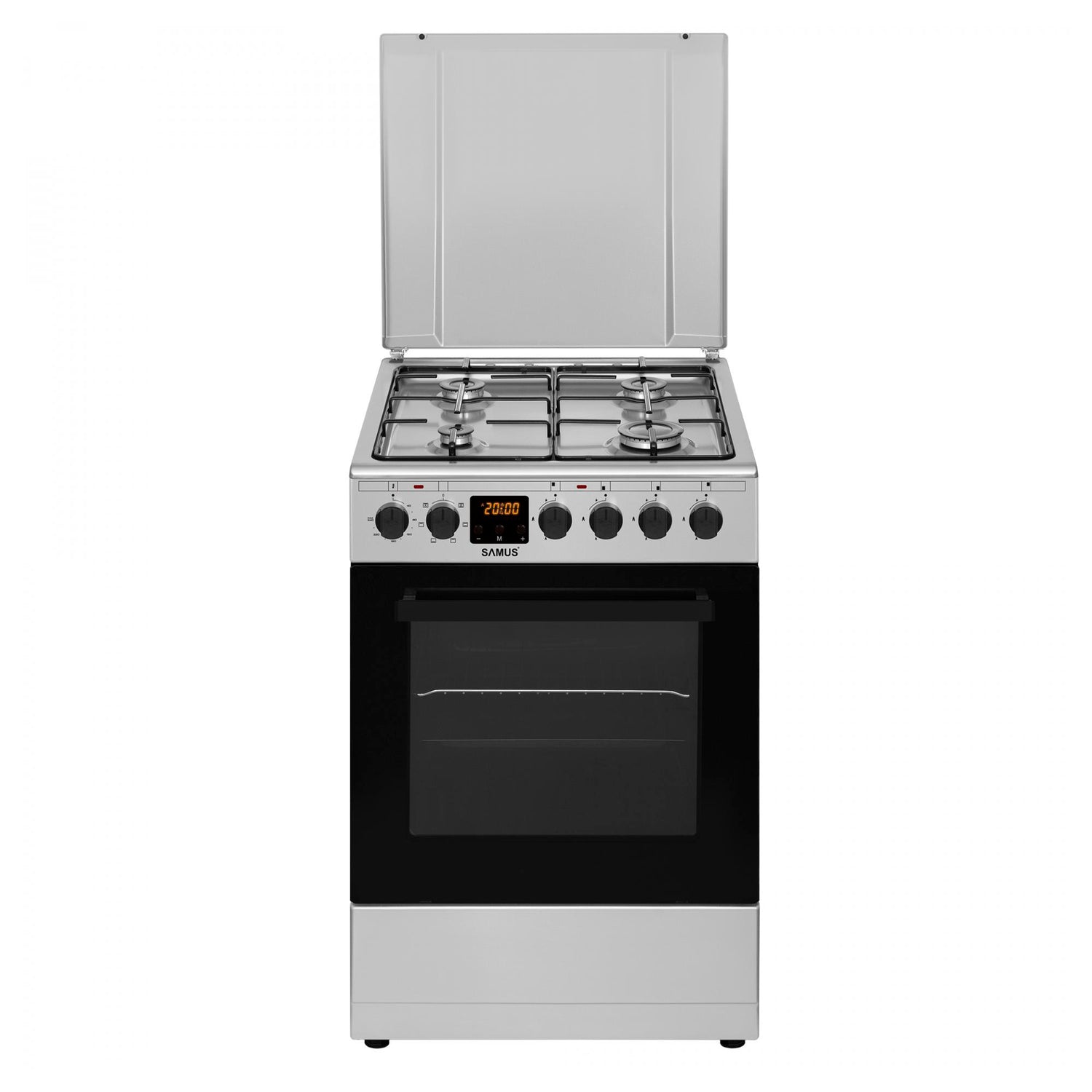 Aragaz Samus SM563AENS INOX - diuze montate GN, 50x60, 4 arzatoare pe gaz, cuptor electric , aprindere electrica, 7 functii cuptor, Display este în așteptare și va fi expediat imediat ce revine în stoc.