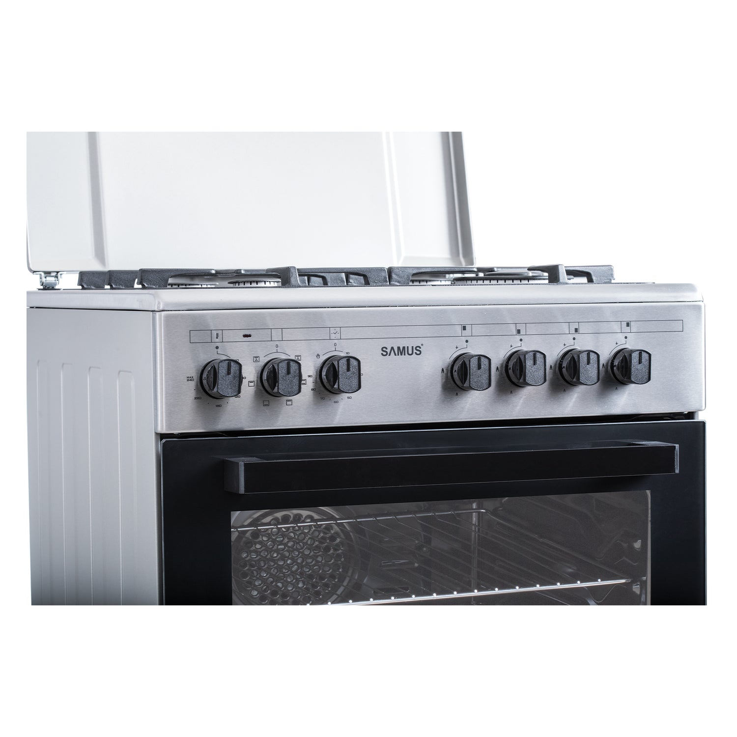 Aragaz Samus SM662AENS1 INOX - diuze montate GN, 60x60, 4 arzatoare pe gaz, cuptor electric