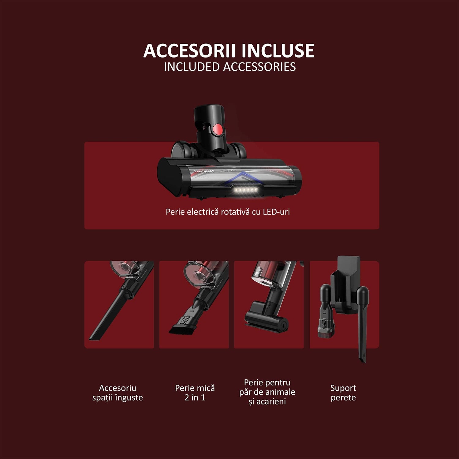 - Motor BLDC de 600W - Motorul brushless de 600W ofera o putere de aspirare impresionanta de 29 kPa (210W absorbtie), suficienta pentru curatarea profunda a covoarelor groase si a podelelor dure.