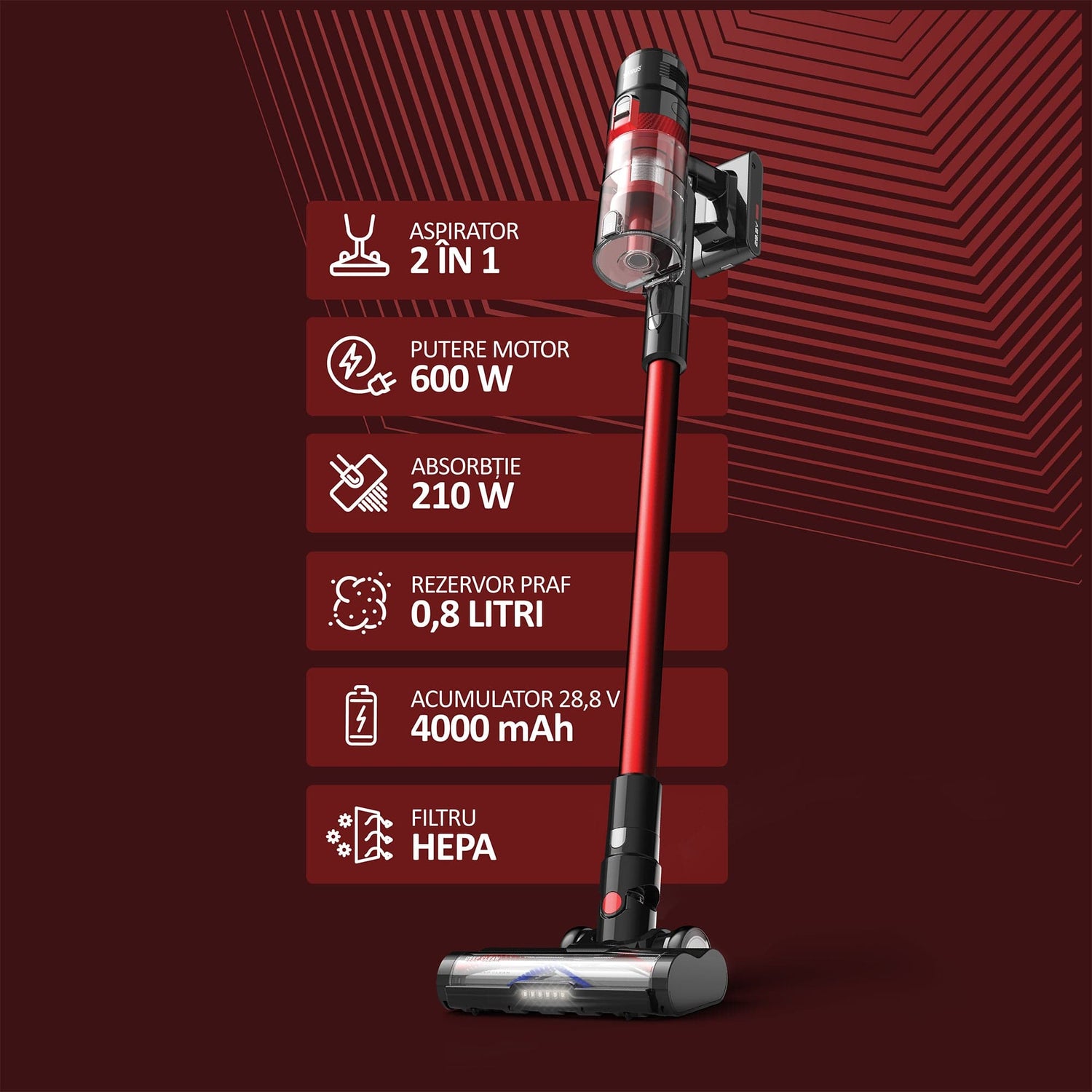 Aspirator Vertical Samus Hurricane Max Pro | 600W, 0.8L, BLDC, Rosu