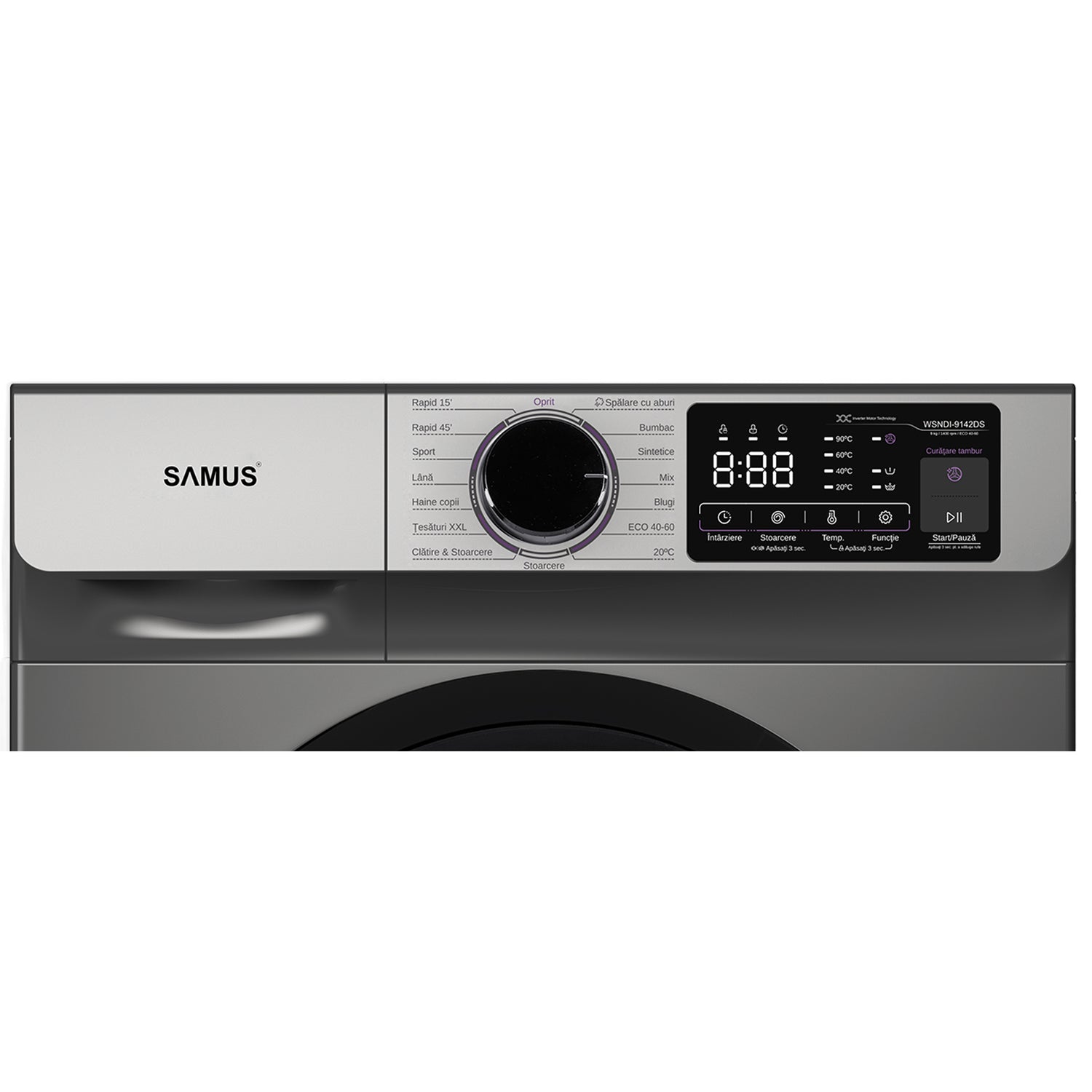 Automată Samus WSNDI-9142DS - capacitate 9 kg(rufe uscate) ▪ Motor INVERTER ▪ Afişaj electronic ▪ 15 programe ▪ Max