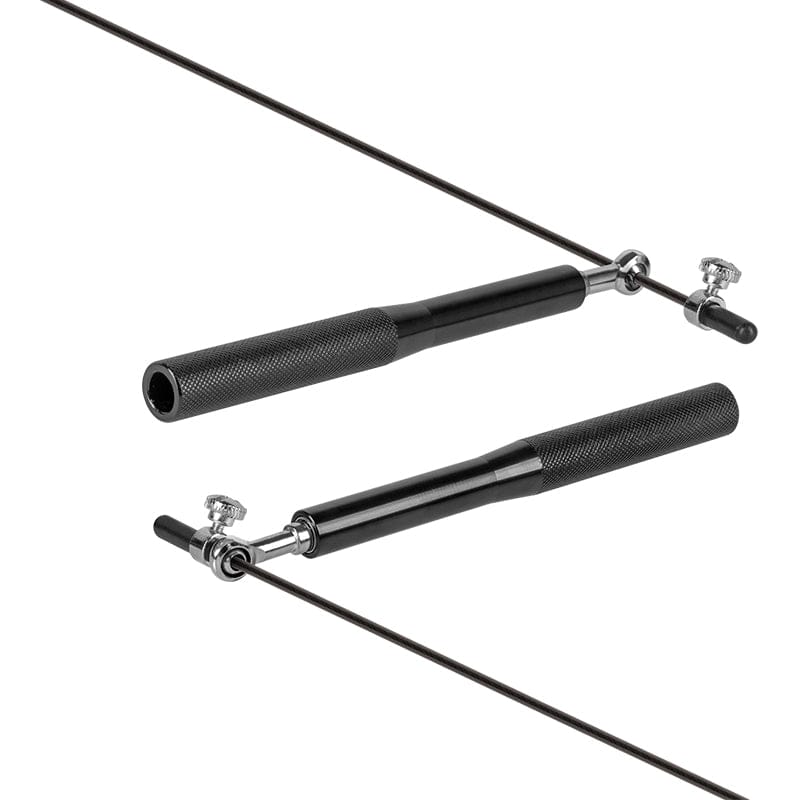 Descriere: Lungime coarda: 300 cm (reglabila) Grosimea liniei: 3 mm Material frânghie: acoperire PVC, cablu de oțel Lungime mâner: 15 cm Material maner: aluminiu Material lagăre: fier Greutate: 147 g
