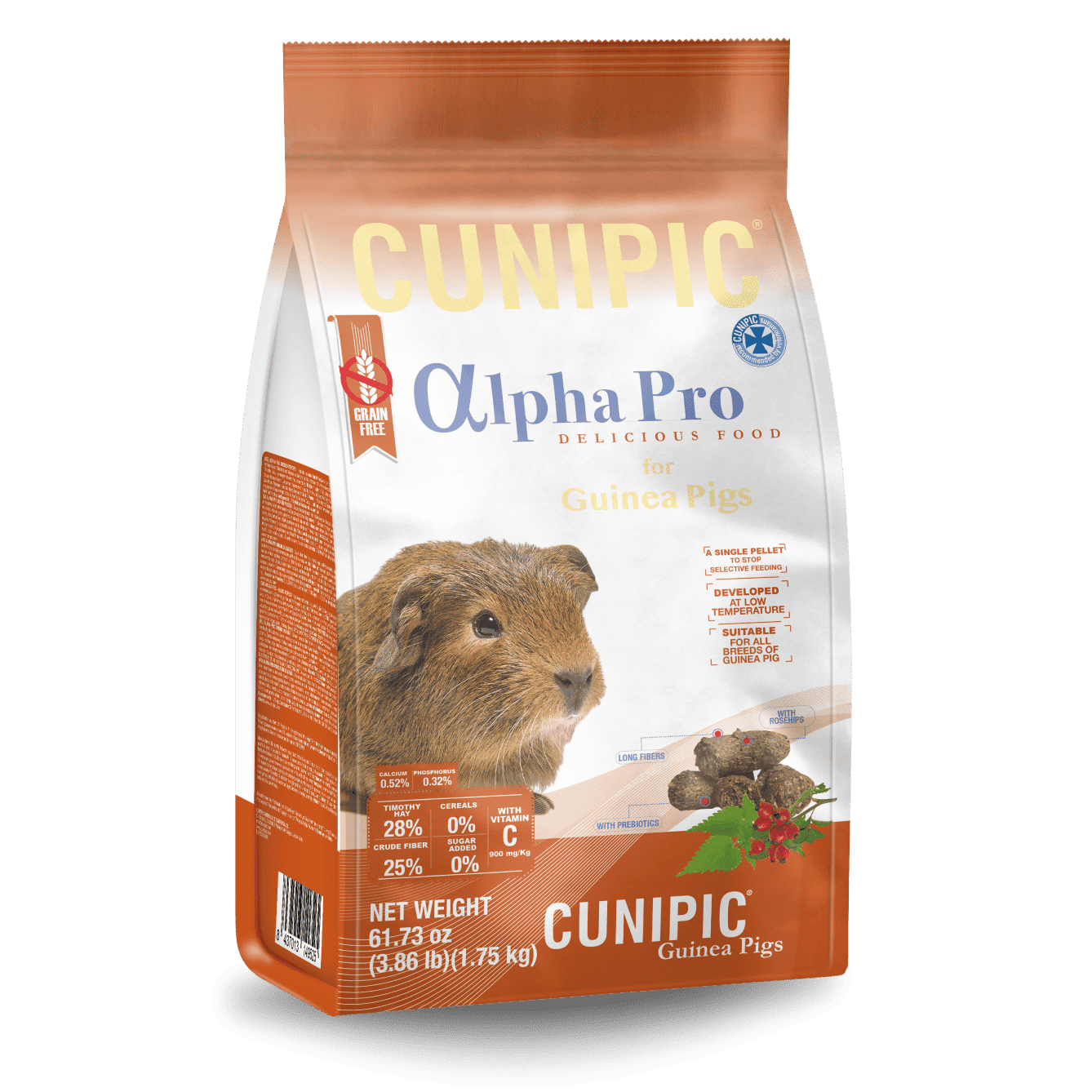 CUNIPIC Alpha Pro este un meniu complet și sănătos, special formulat pentru porcușorii de Guineea, asigurând o alimentație echilibrată și adaptată nevoilor lor nutriționale zilnice. Rețeta este concepută pentru a susține digestia, sănătatea dentară și starea generală de bine a animalului.