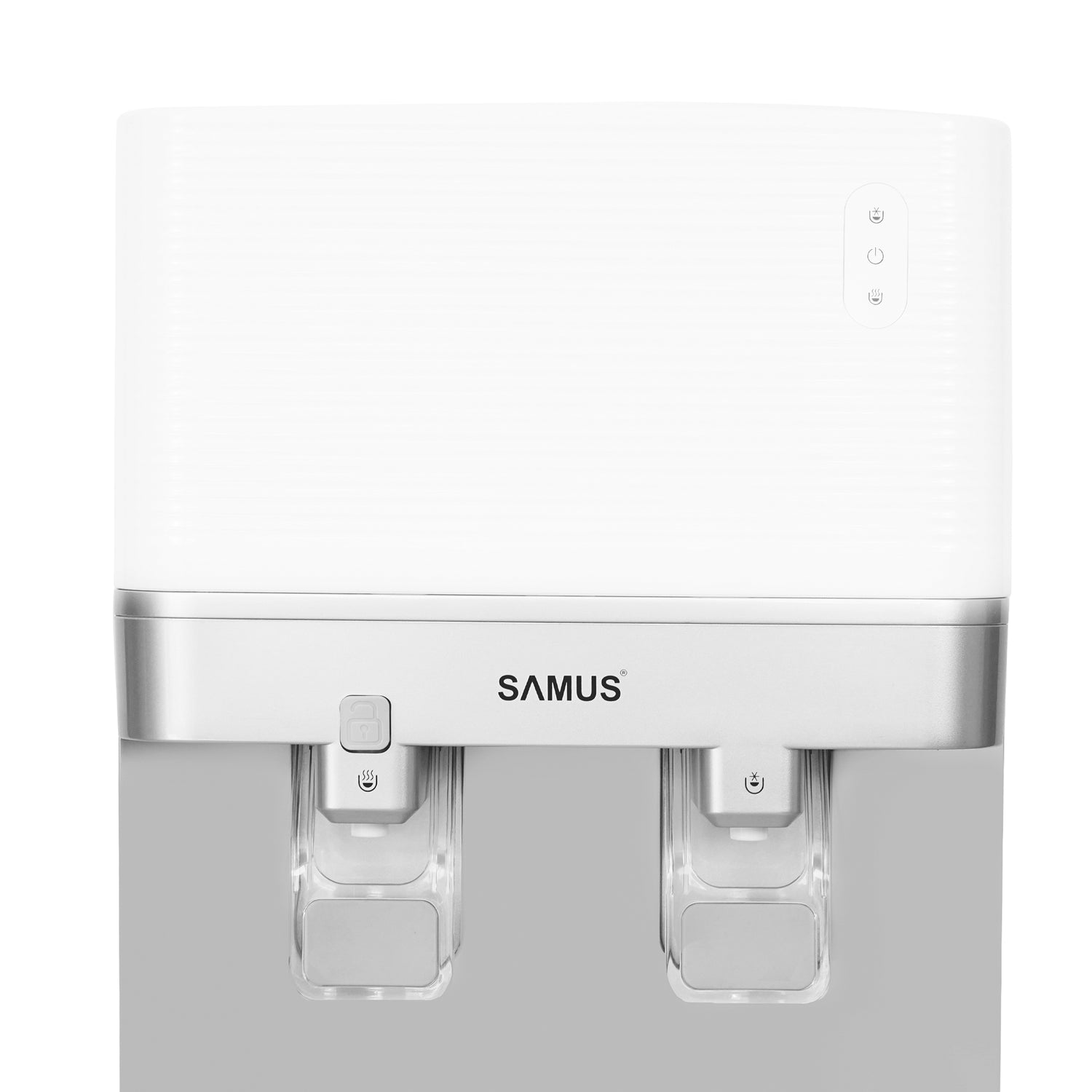 Dozator de apa Samus WDST-252CWS - Încărcare superioară, Putere încălzire apă: 500 W, Debit maxim apă caldă: 5 litri/h, Sursă de apă: Bidon(11/19 litri), Răcire cu compresor de înaltă eficienţă, Putere răcire apă: 85 W, Debit maxim apă rece: 2 litri/h, Re