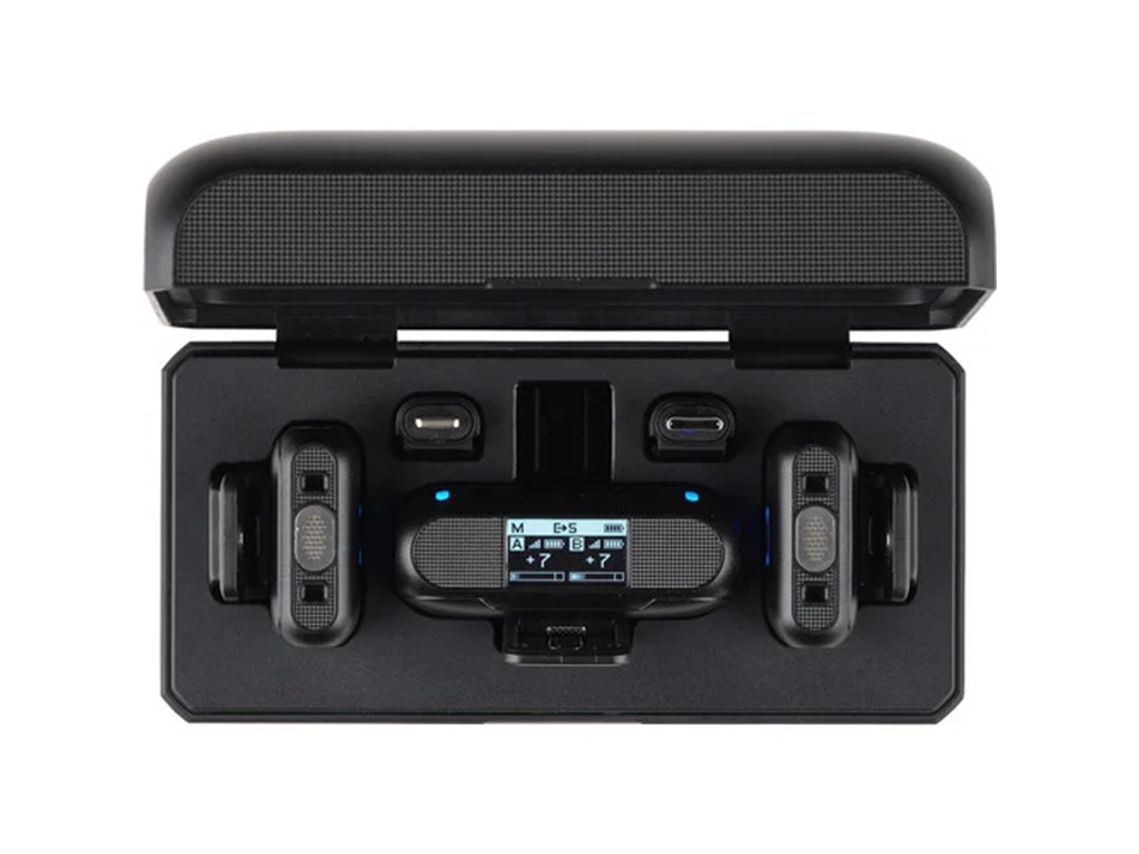 Include două emițătoare clip-on cu microfoane omnidirecționale, filtre low-cut (75 Hz/150 Hz), două niveluri de reducere a zgomotului (2-stage noise cancellation), control gain de la distanță (17 trepte), buton Mute, și accesorizate cu ecrane antivânt