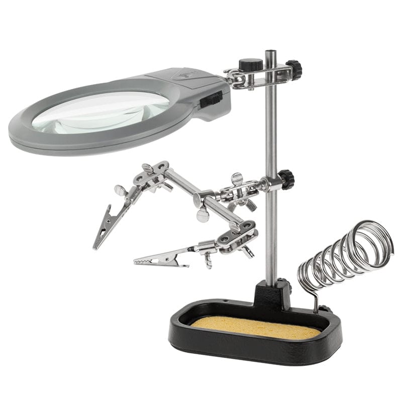 Descriere: Lupa cu clesti de prindere cablaj si suport pentru letcon.