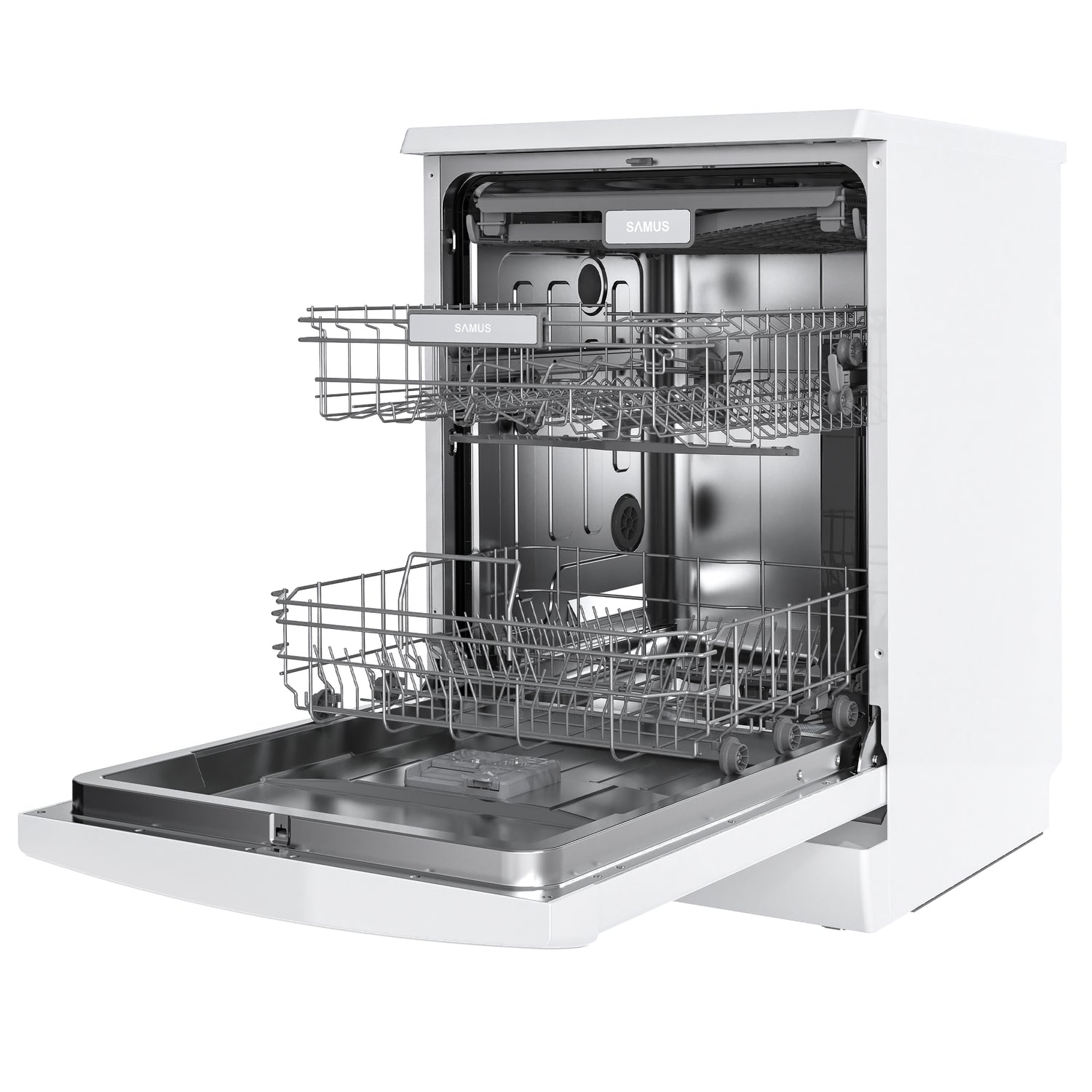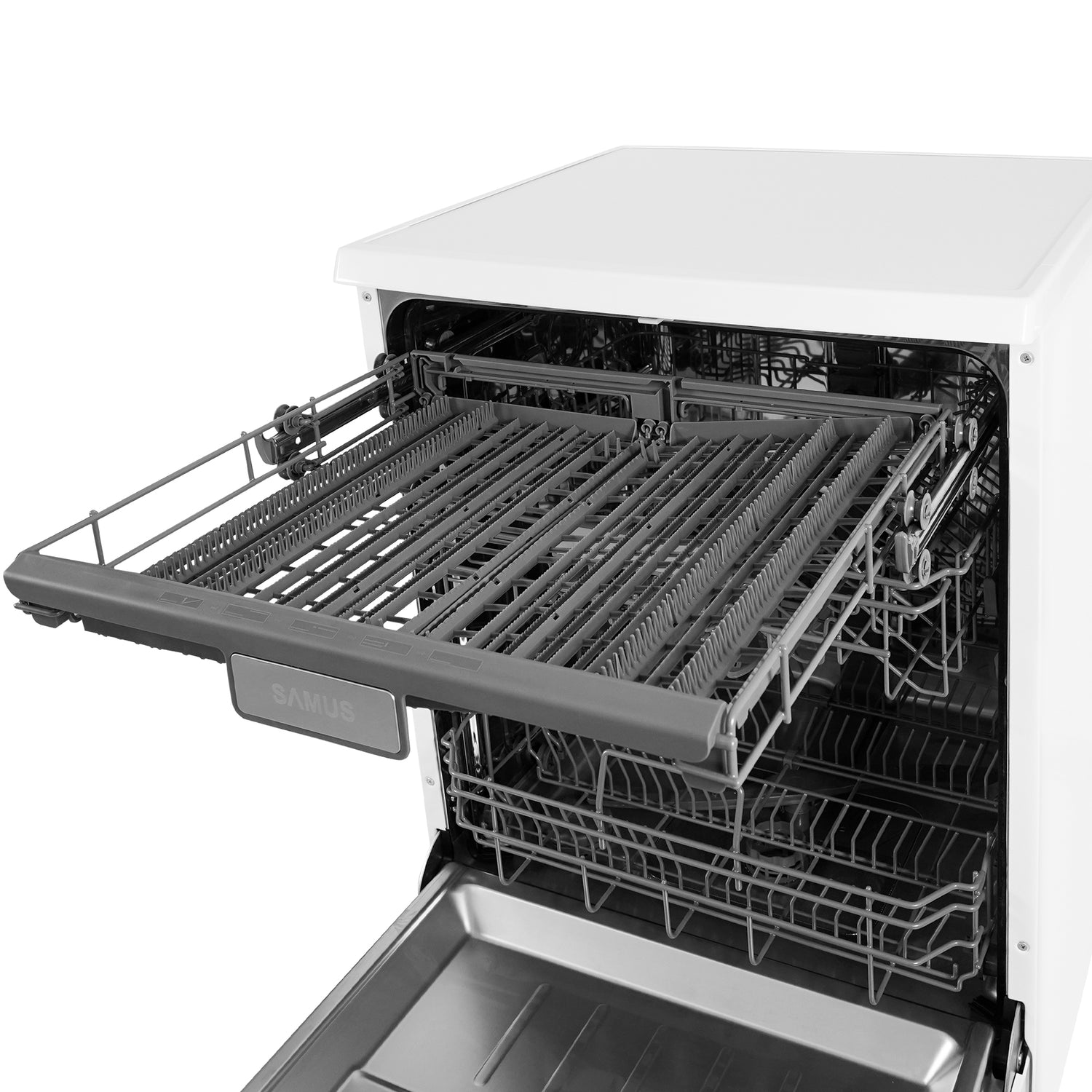 Masina Spalat Vase Samus SDW614.8 - laţime 60 cm, capacitate 14 seturi, cos inferior+cos superior+sertar pentru tacamuri, 8 programe: Auto, Intensiv, Universal, Eco, Pahare, 90 min, Rapid, Inmuiere, Autocuratare, clasa de energie E, afisaj electronic, opt