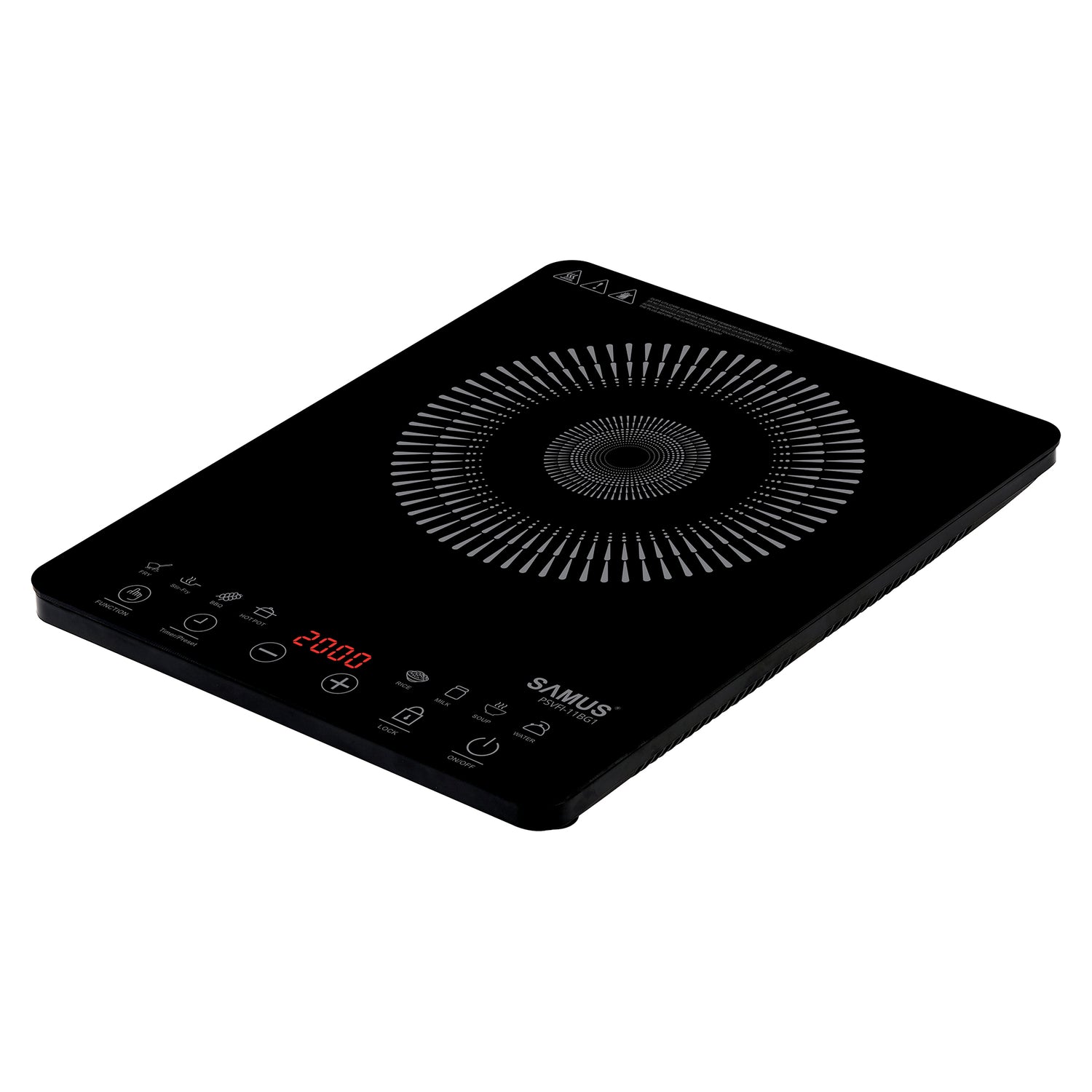 Plită electrică Samus PSVFI-11BG1 - Plita Inductie portabila, putere 2000 W, control tactil cu senzor, placa de cristal negru 280x350 mm, afisaj electronic digital, 8 functii inteligente de gatit, reglaj temperatura si putere in 8 trepte, temporizator(1 m