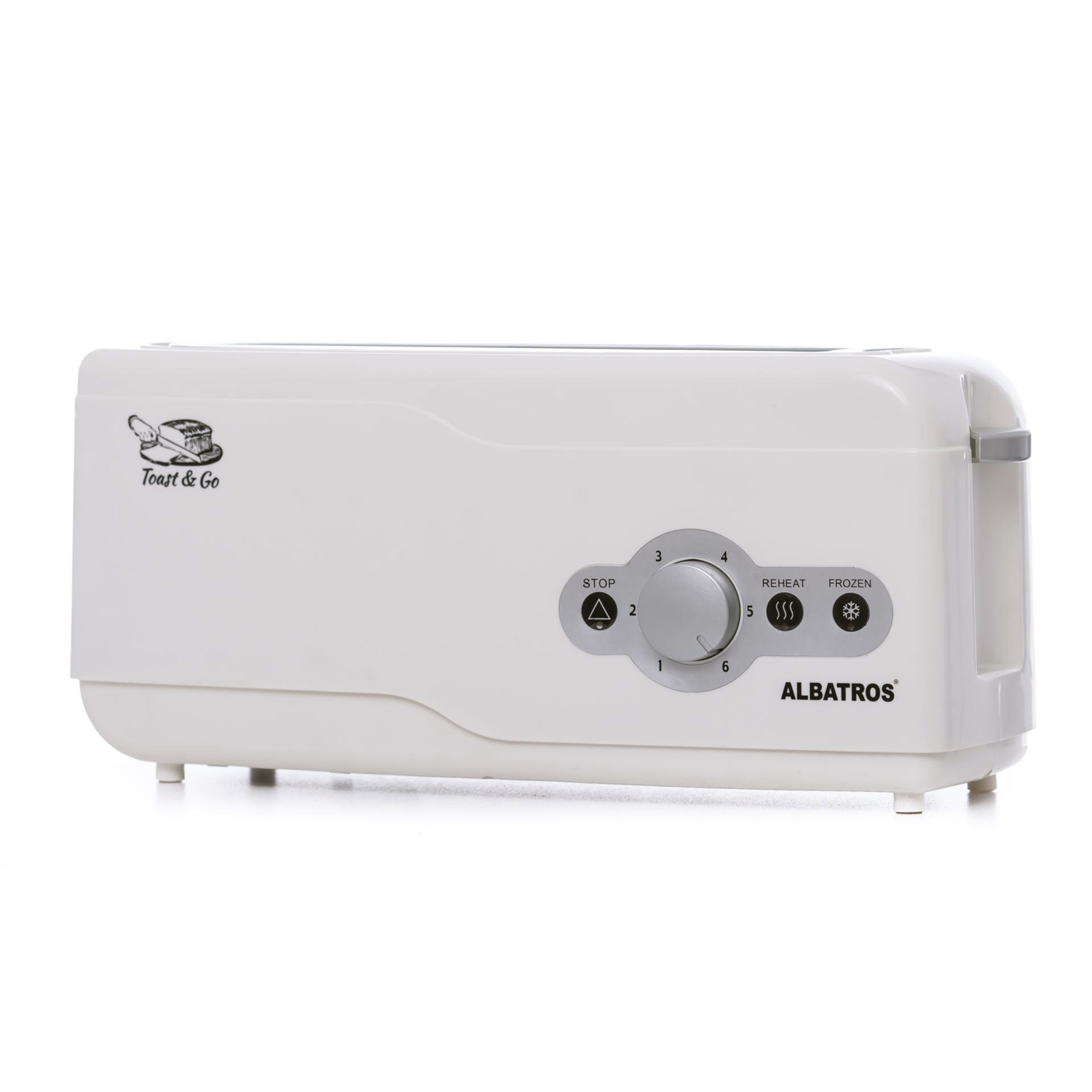 Prăjitor pâine Albatros EXPRESS - Putere 750 W, capacitate: 2 felii, 6 trepte de prăjire, termostat reglabil, mecanism automat de ridicare a feliilor, opţiuni suplimentare: dezgheţare, reîncălzire, oprire manuală, utilizare uşoară, tăviţă pentru firimitur