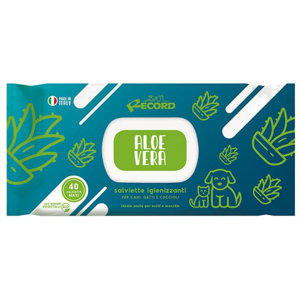 SERVETELE ANTIBACTERIENE RECORD CU ALOE VERA 40buc sunt servetele umede pentru curatarea blanii cainilor si pisicilor. Cu parfum de aloe vera, servetelele Record lasa blana moale, stralucitoare si frumos parfumata.