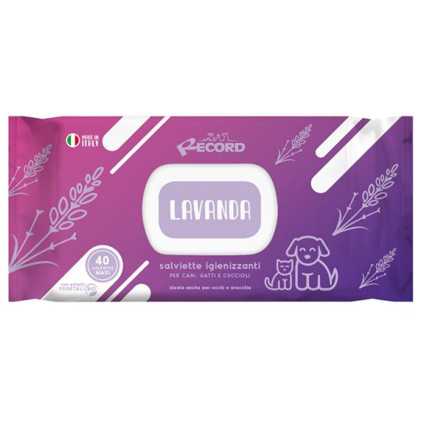 SERVETELE ANTIBACTERIENE RECORD CU LAVANDA 40buc sunt servetele umede pentru curatarea blanii cainilor si pisicilor. Cu parfum de lavanda, servetelele Record lasa blana moale, stralucitoare si frumos parfumata.