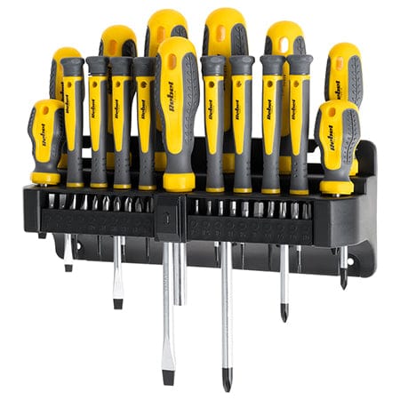 Setul de șurubelnițe Rebel RB-1150 este trusa completă pentru orice atelier. Include șurubelnițe cu vârfuri magnetice și mâner ergonomic. Fabricate din oțel crom-vanadiu de înaltă calitate. Setul conține șurubelnițe plate, stea, precizie, biți hexagonali, Torx și suport din plastic. Varietate de dimensiuni pentru toate aplicațiile. Vârfuri magnetice pentru ținerea șuruburilor. Ideal pentru electronice, mobilă, auto și lucrări generale.