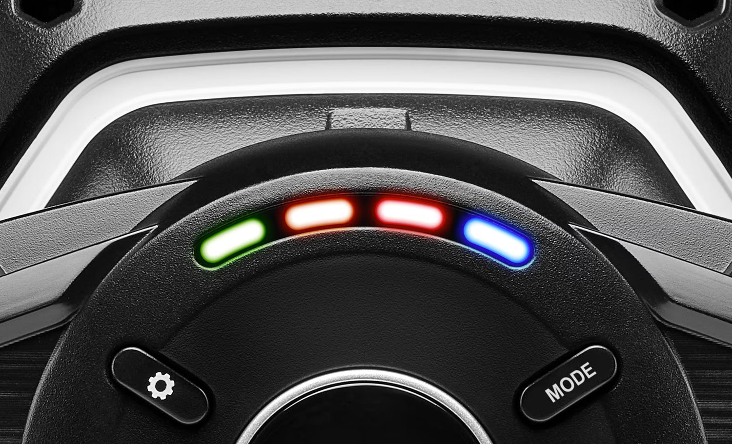 Banda LED cu 4 culori va permite sa monitorizati turatia motorului fara sa va luati ochii de la drum. LED-urile clipesc atunci cand trebuie sa treceti la o treapta de viteza superioara, permitandu-va sa va optimizati schimbarea treptelor de viteza. Lista de jocuri compatibile pe Playstation si PC este actualizata periodic pe site-ul de asistenta tehnica Thrustmaster.